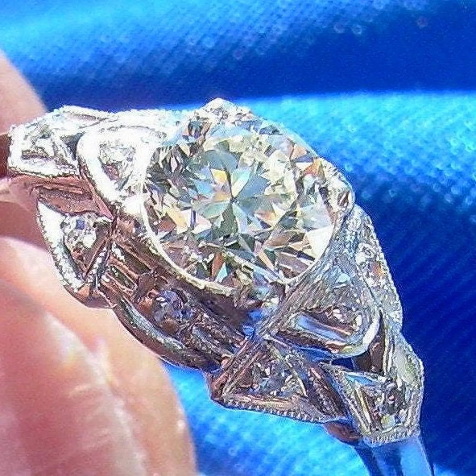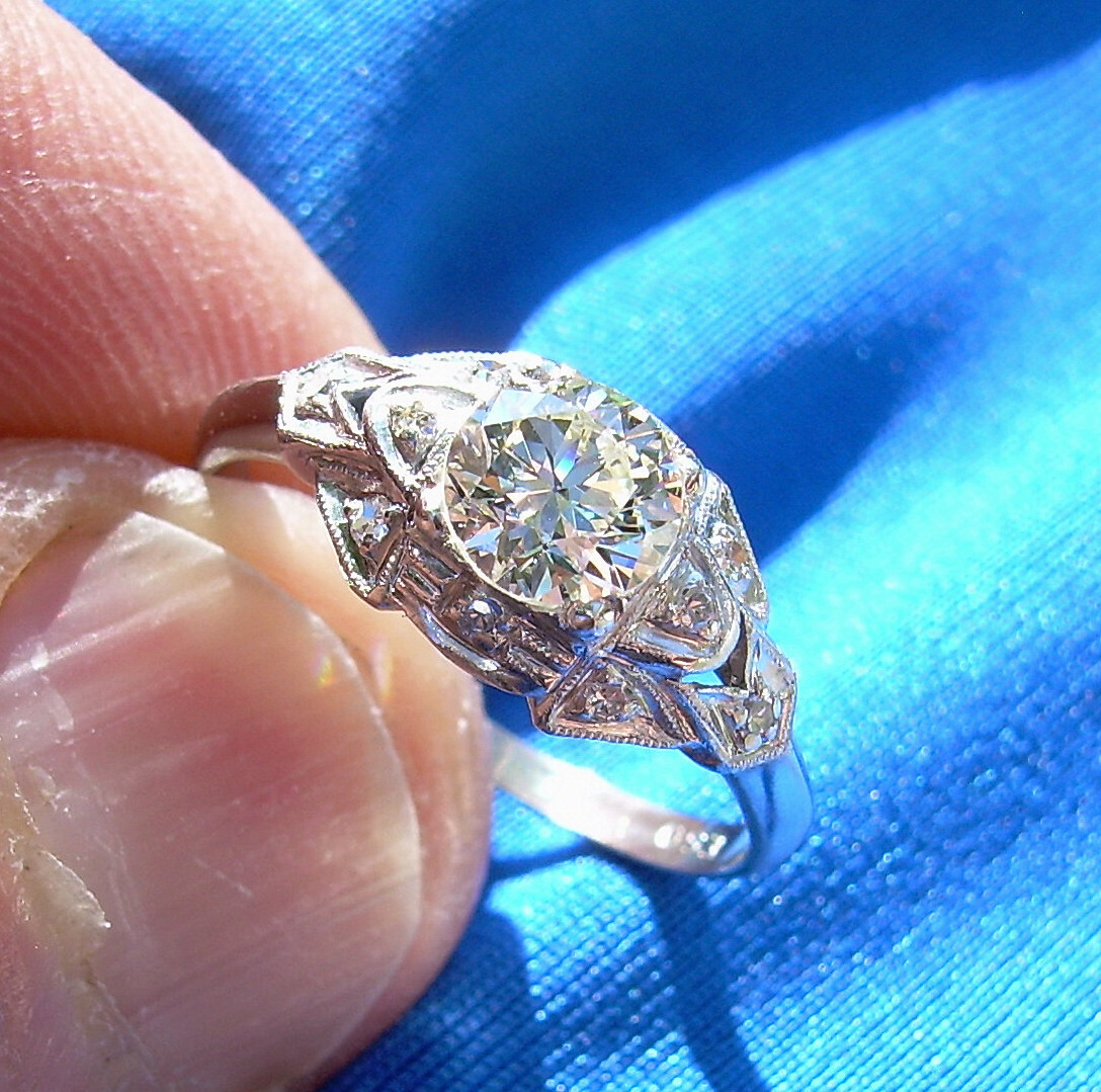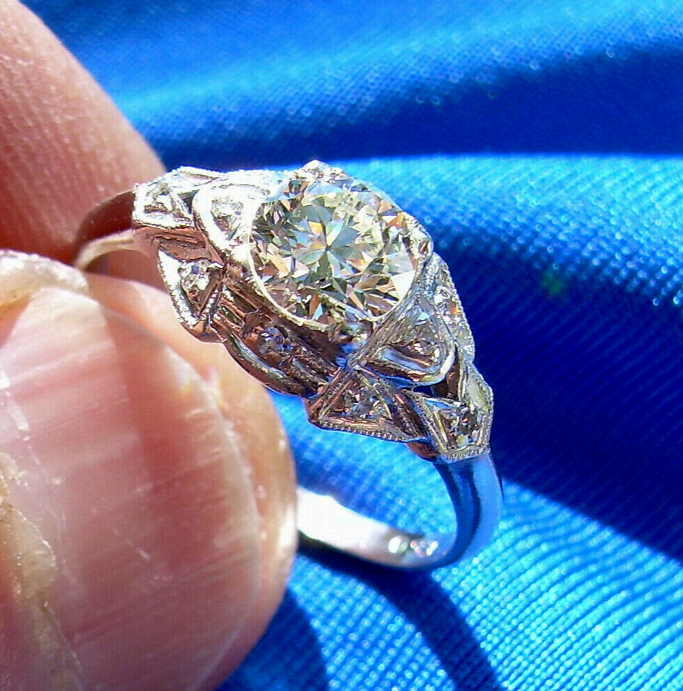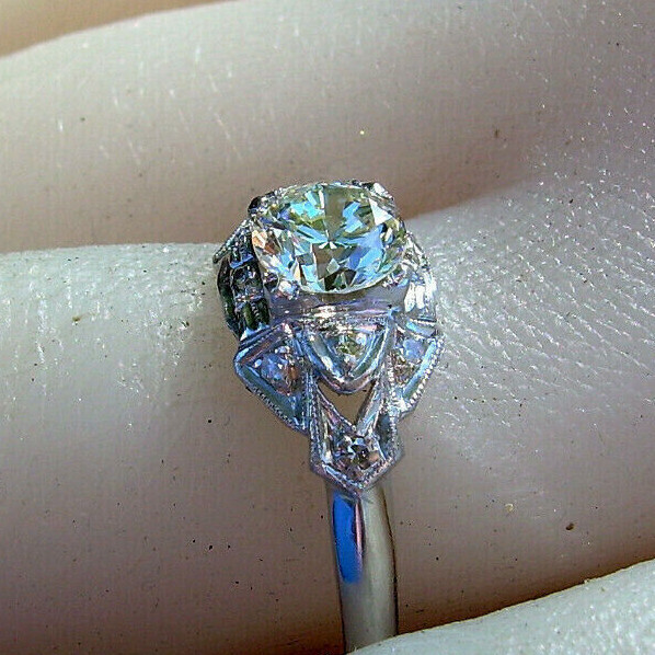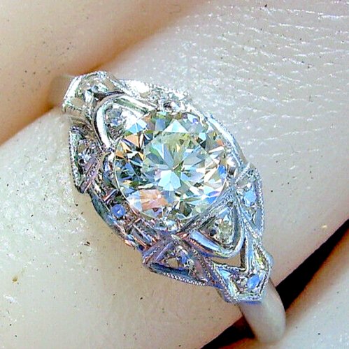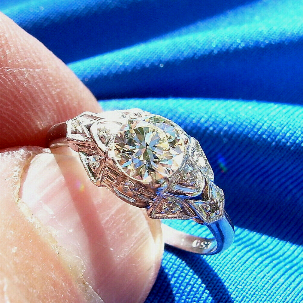Earth mined Diamond Deco Engagement Ring Antique Solid Platinum Solitaire 0.82ct