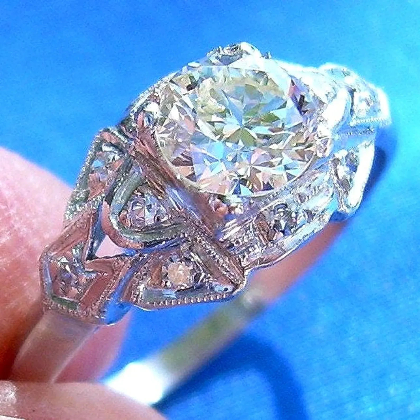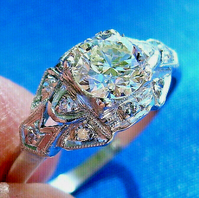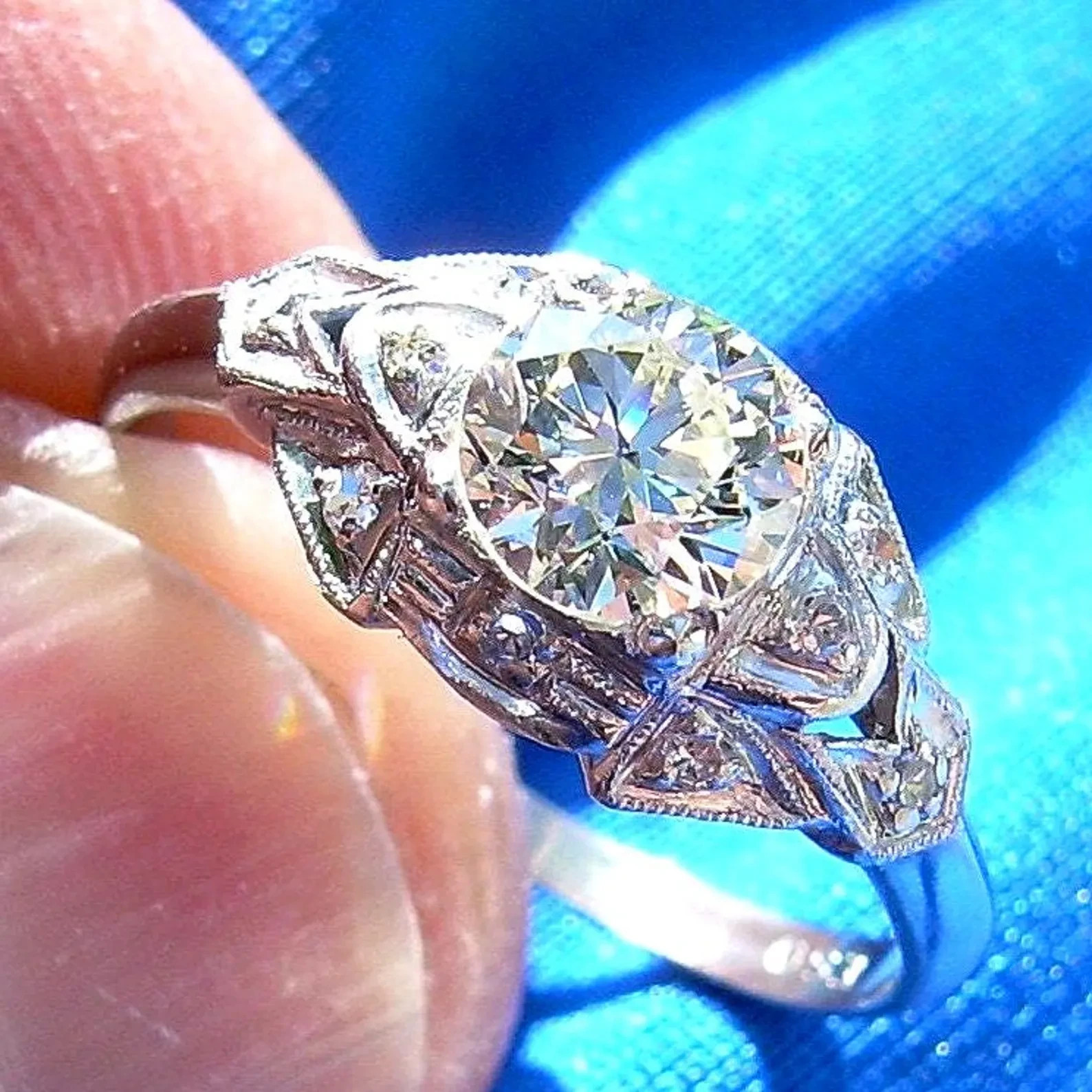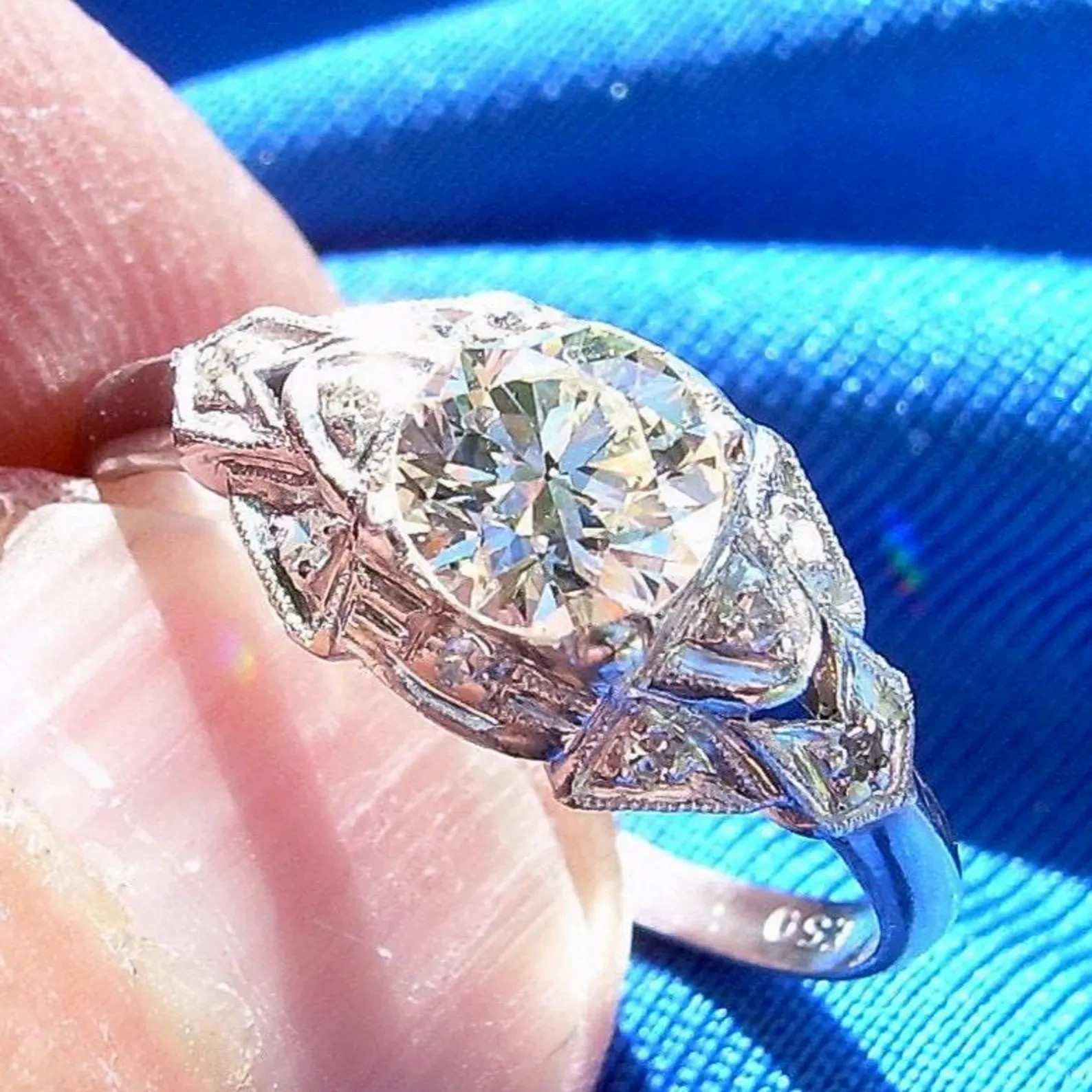 Earth mined Diamond Deco Engagement Ring Antique Solid Platinum Solitaire 0.82ct