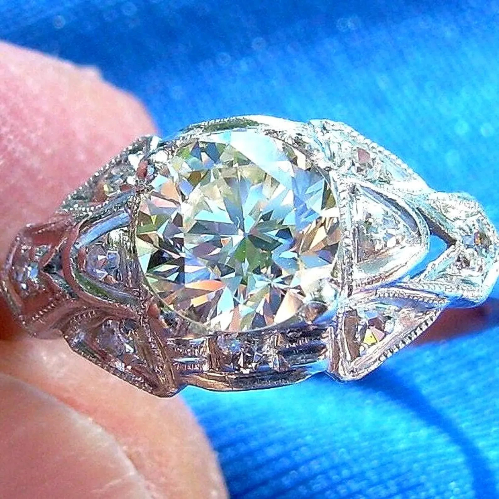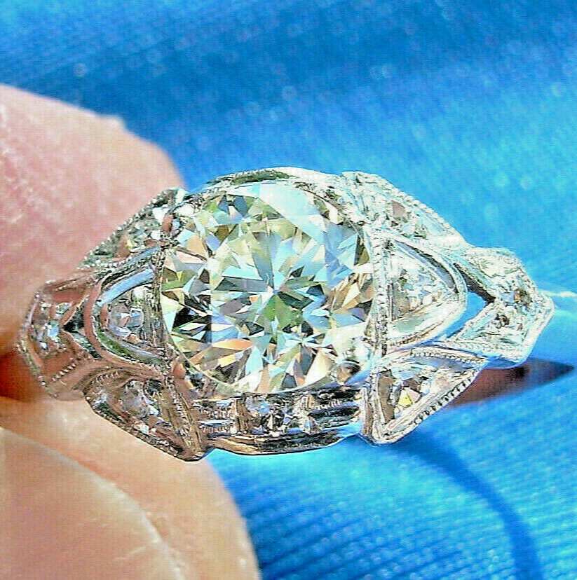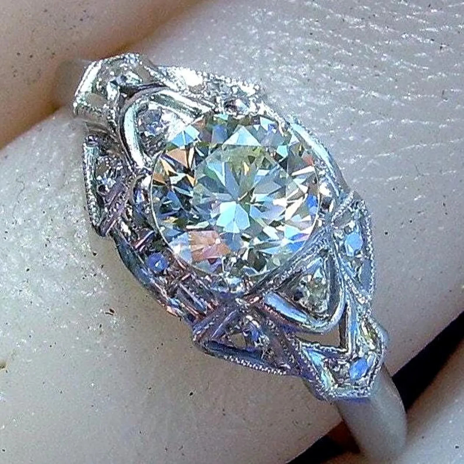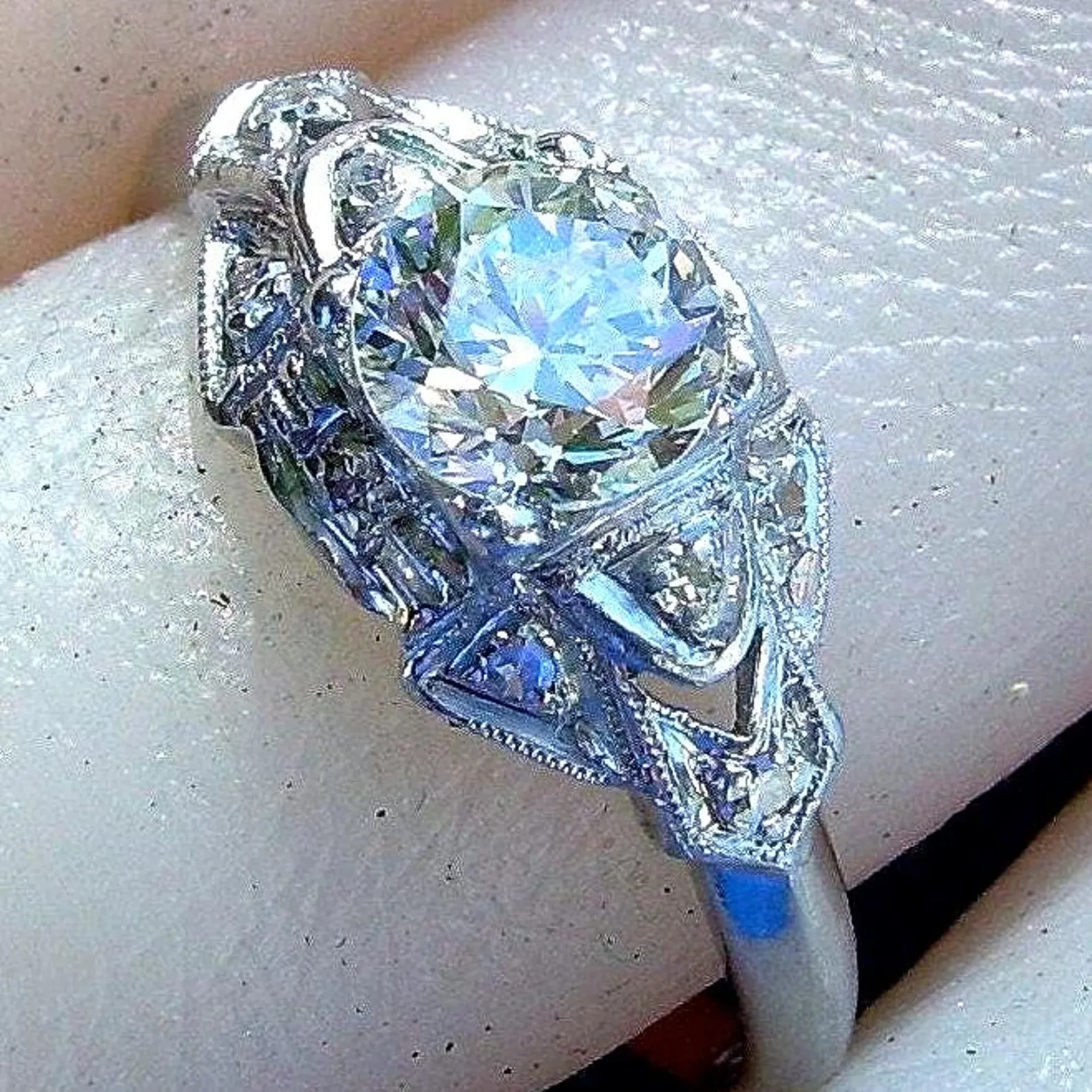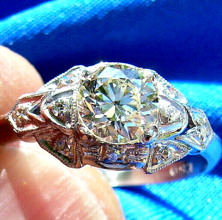 Earth mined Diamond Deco Engagement Ring Antique Solid Platinum Solitaire 0.82ct