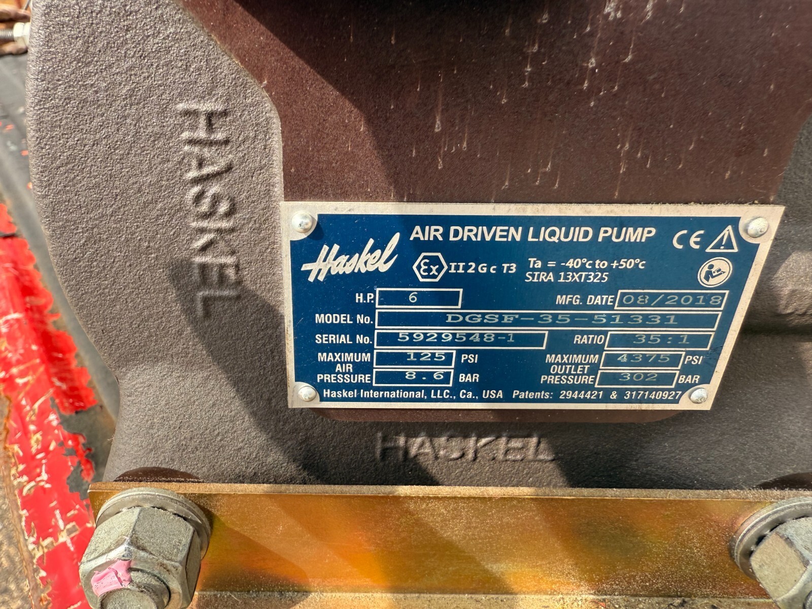 PompA Liquido A Corsa D'aria Haskel DGSF-35-51331 / 6Hp / 35:1 8.6 yp