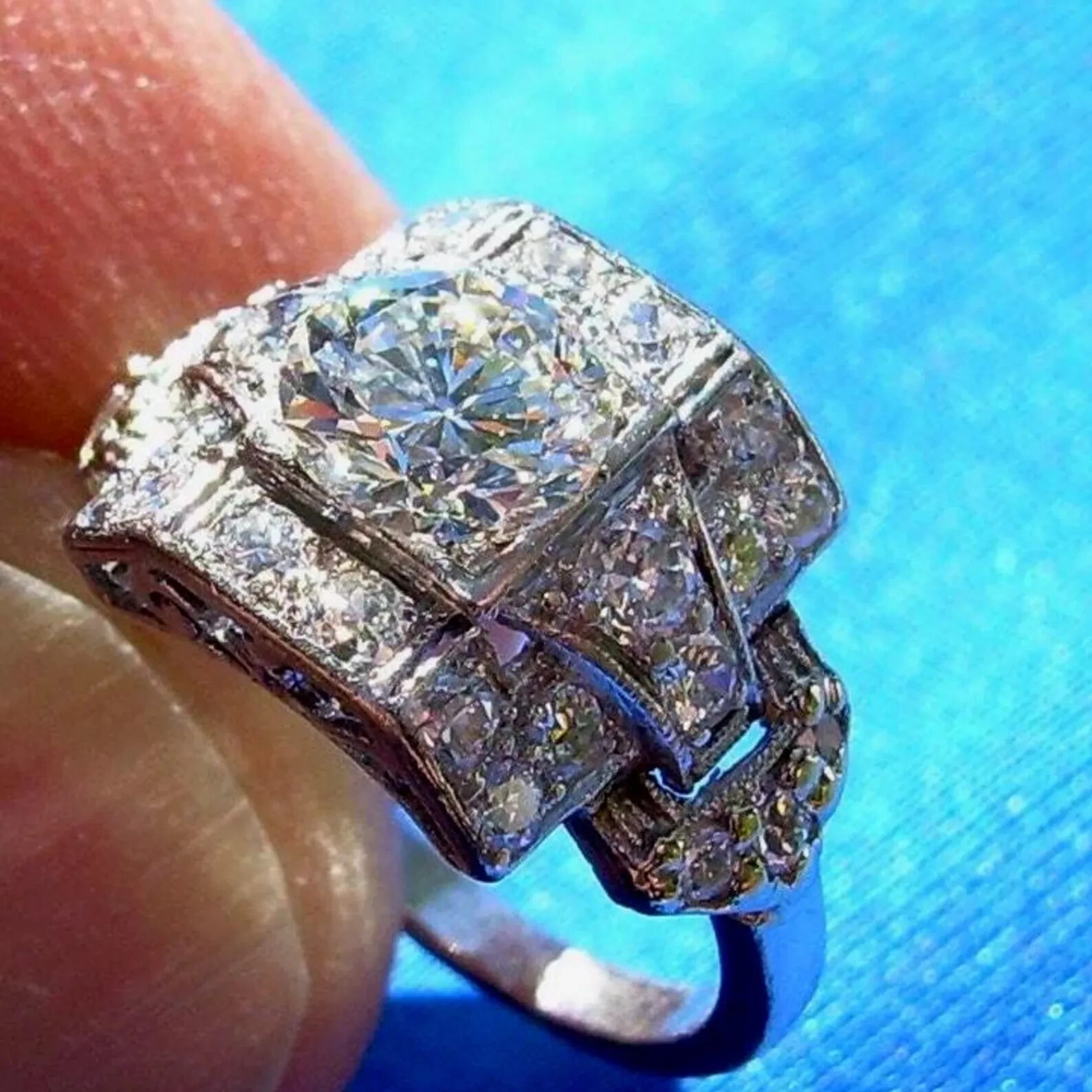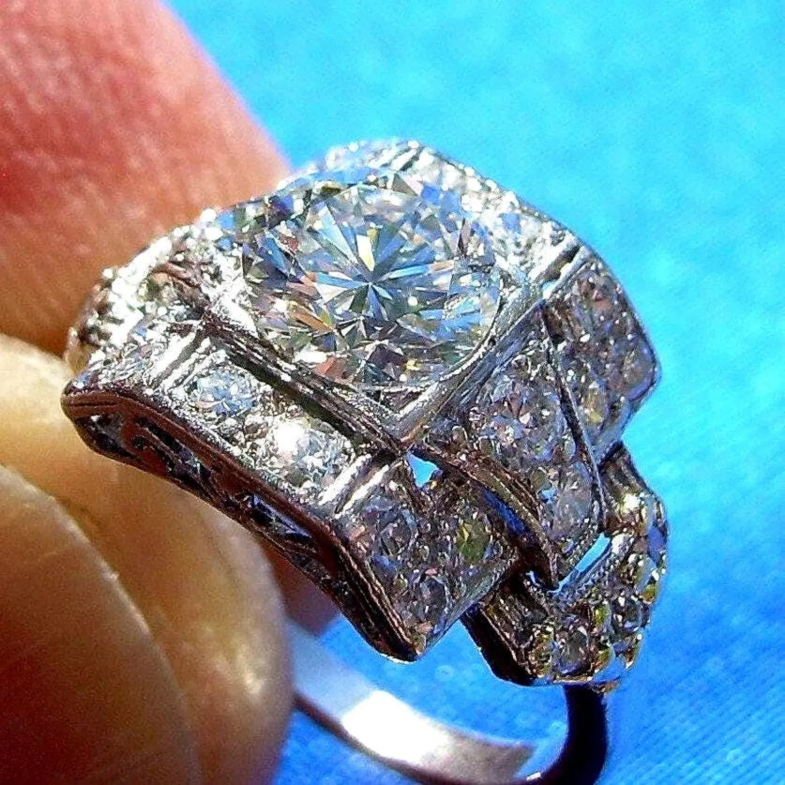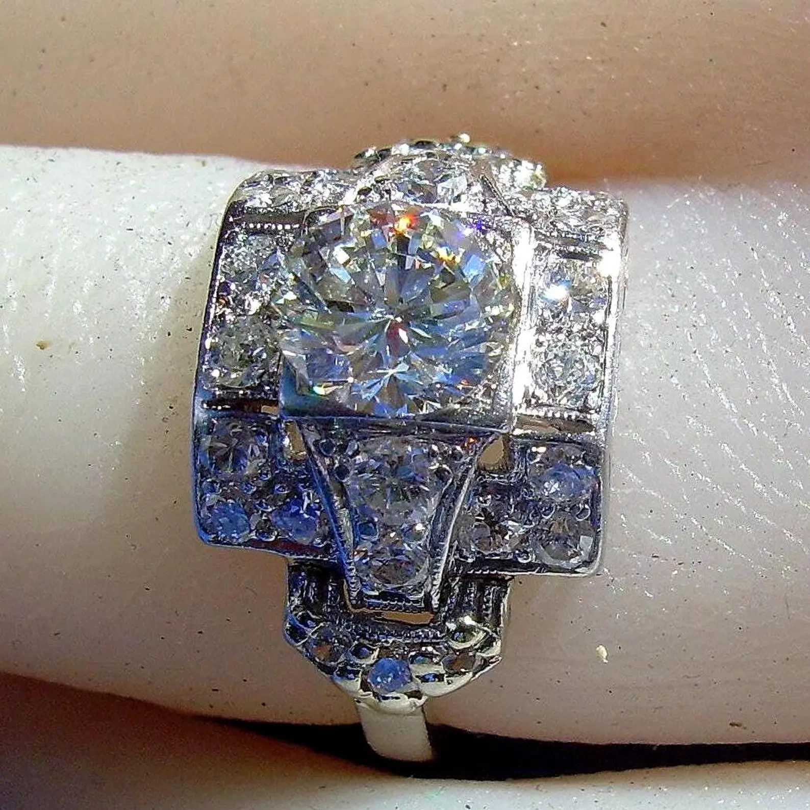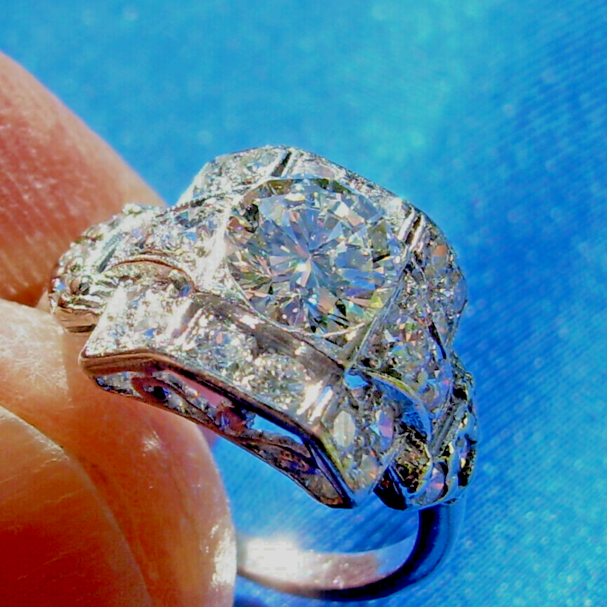 SPECTACULAR DIAMOND PLATINUM GEOMETRIC GATSBY ERA SOLITAIRE.