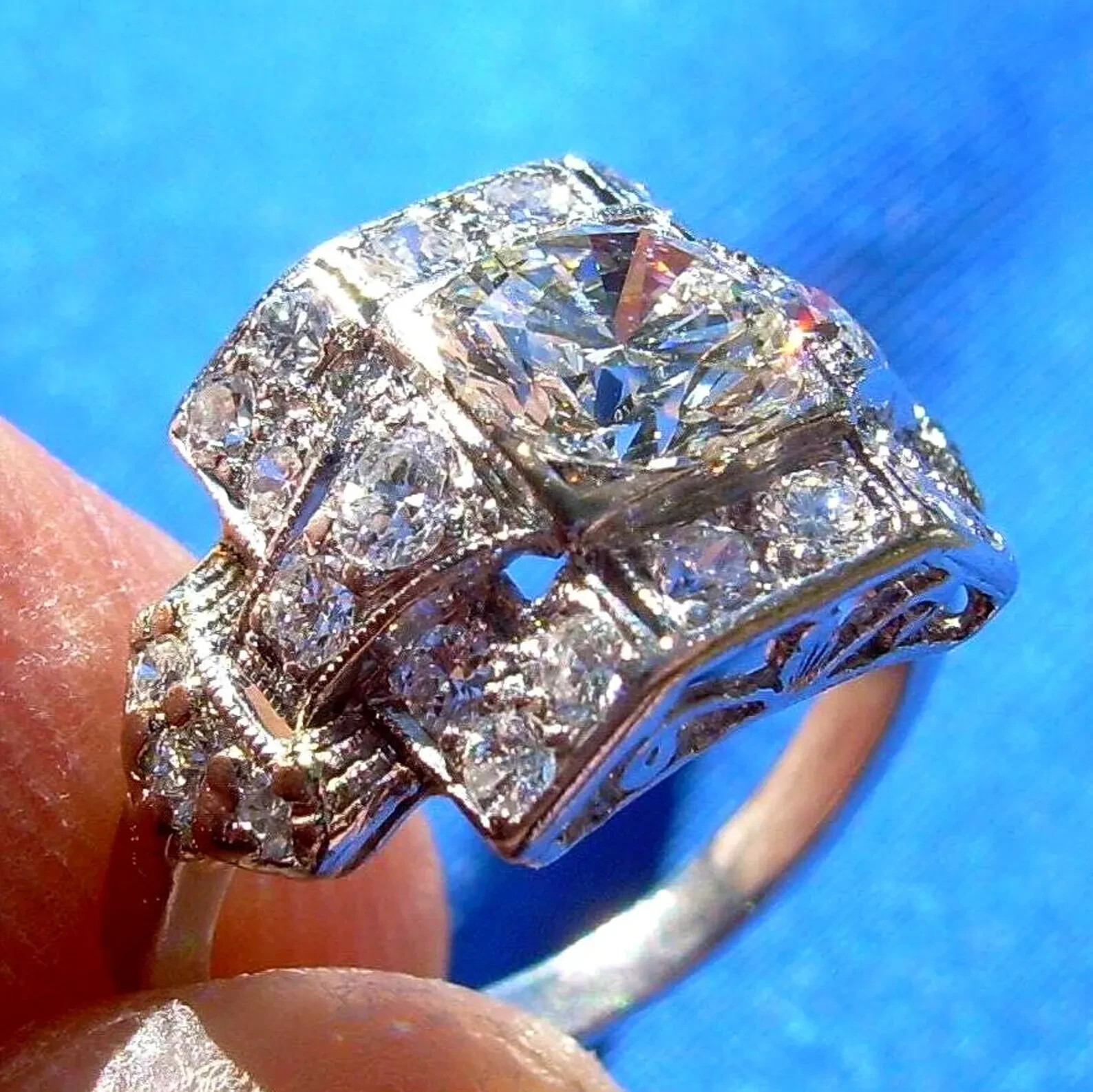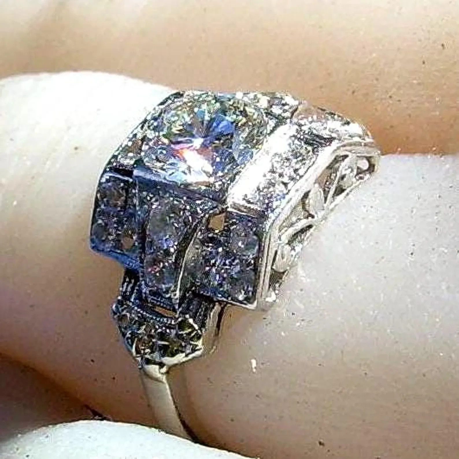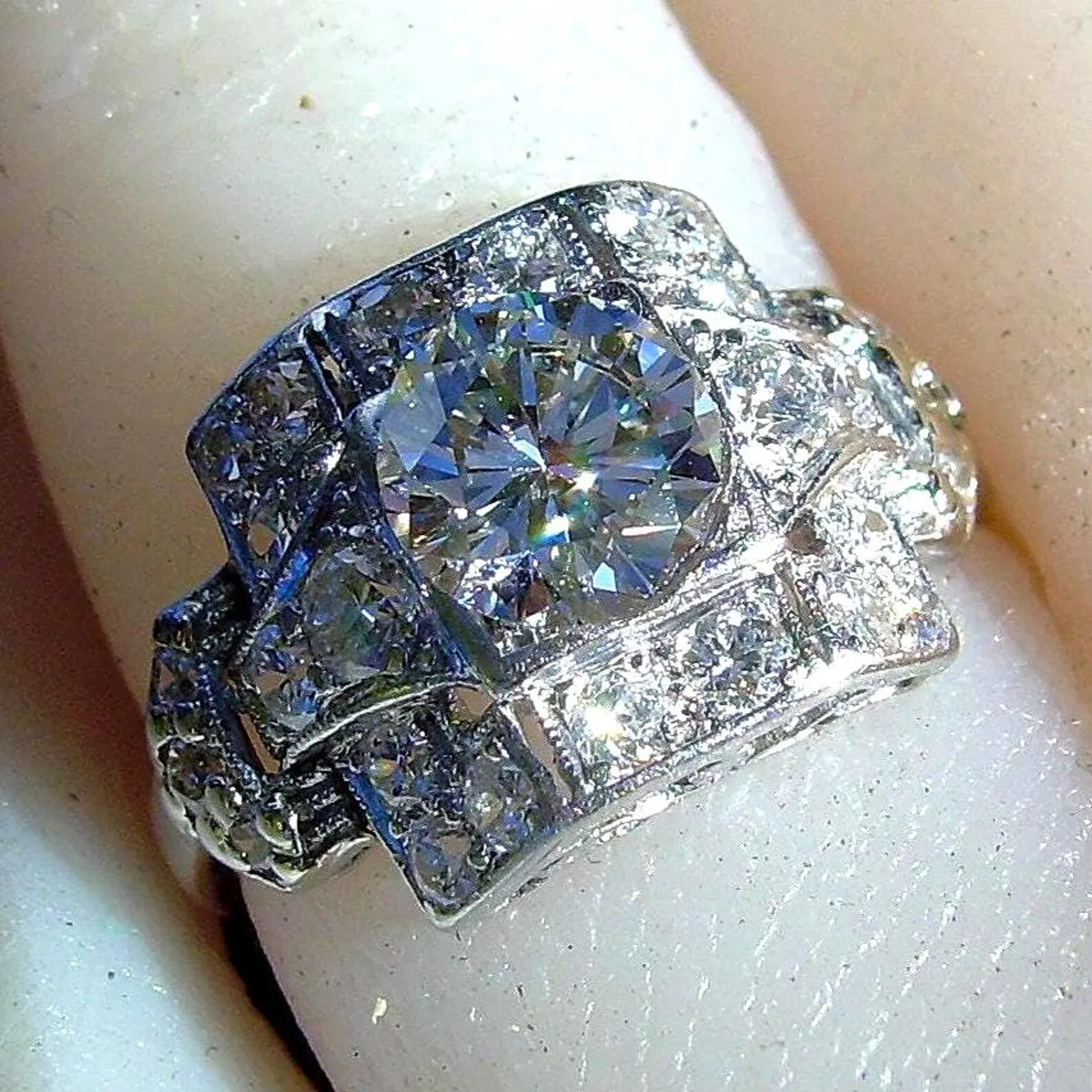 SPECTACULAR DIAMOND PLATINUM GEOMETRIC GATSBY ERA SOLITAIRE.