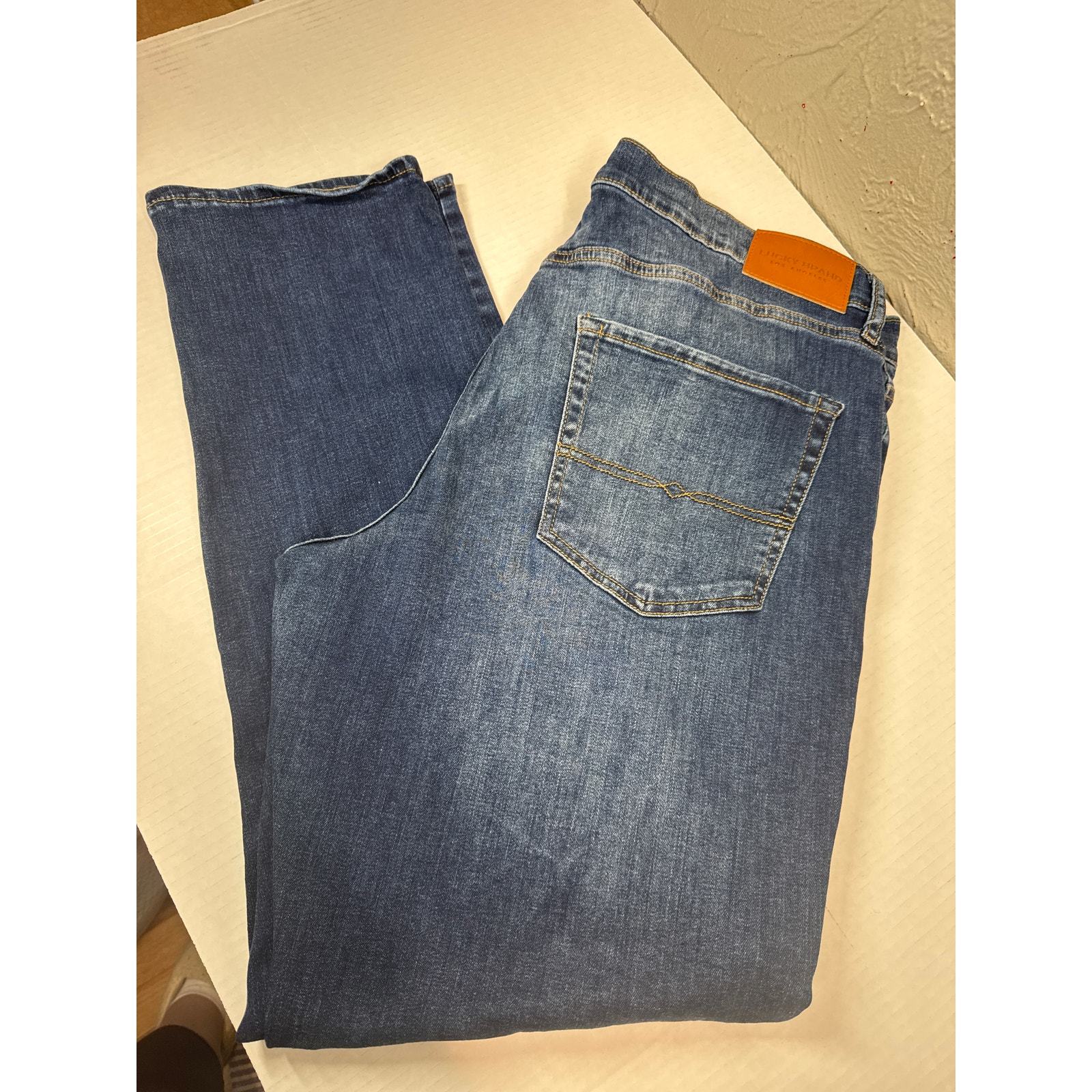 Lucky Brand 410 Athletic Straight Leg Denim Stretch Dark Wash Mens 38x32