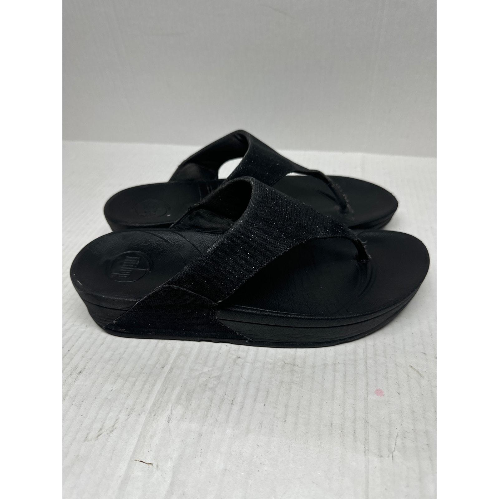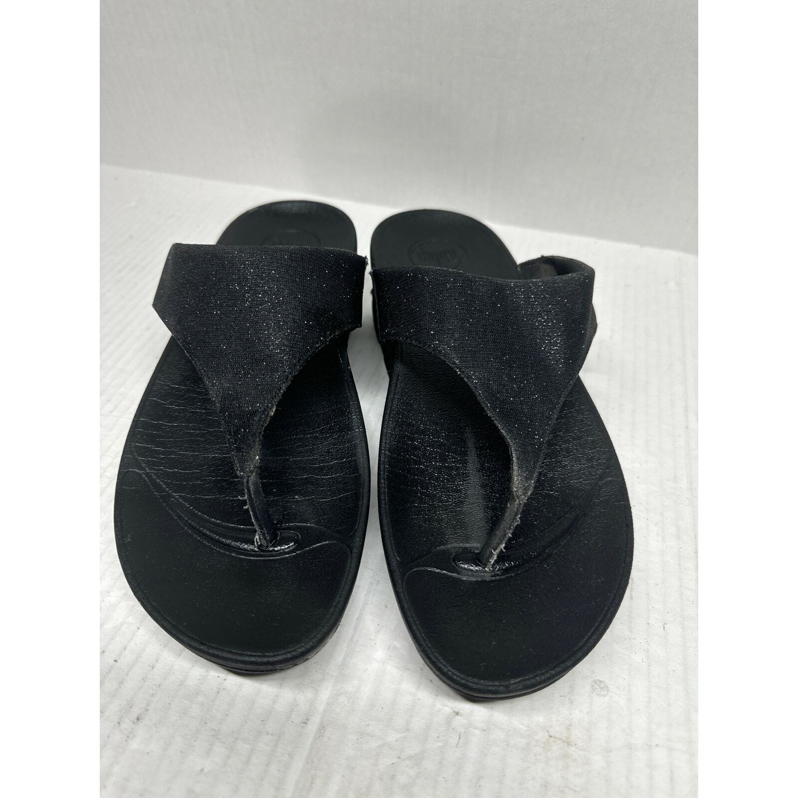 Fitflop Black Shimmer Thong Sandals Women's Flip Flop Platform Style Size 8