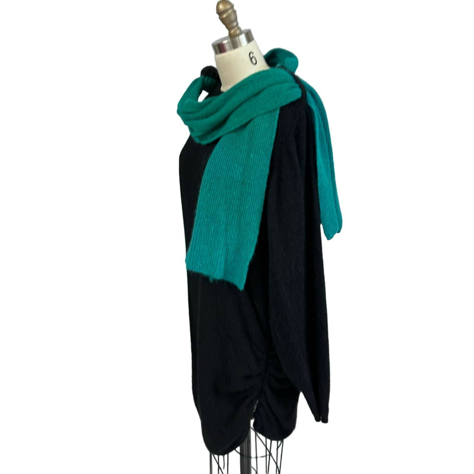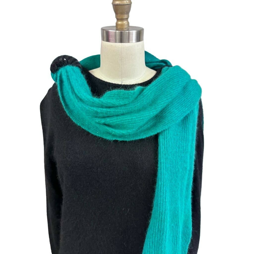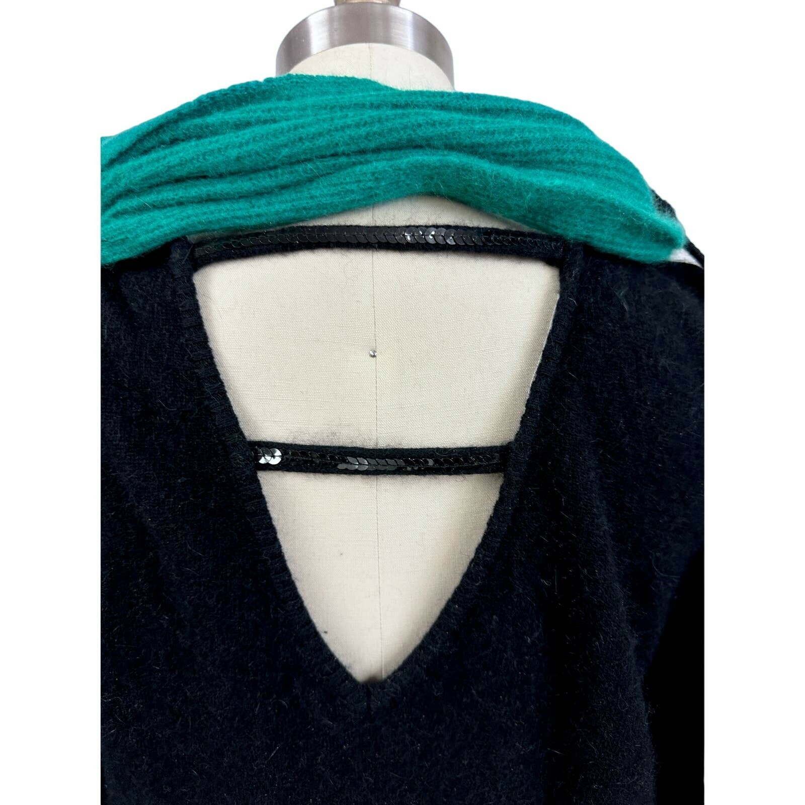 Vintage Frances La Vie Italy Angora Sequin Sweater Dress Green Scarf 80s Glam