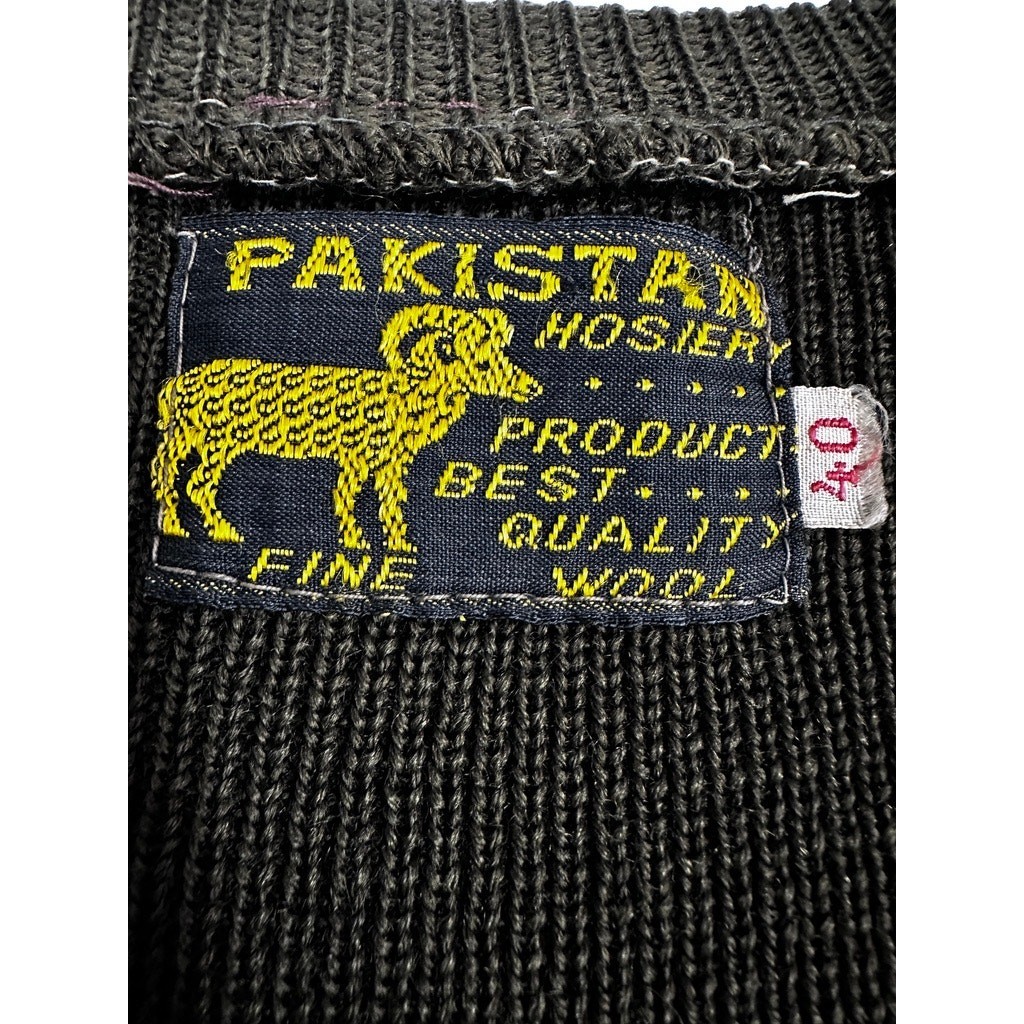 Label History: Pakistan Hosiery mills were known for producing durable wool knitwear and military-inspired garments in the mid-20th century, often exported worldwide for surplus markets. Their sweaters were built for longevity and function, with reinforced details for field or work use.