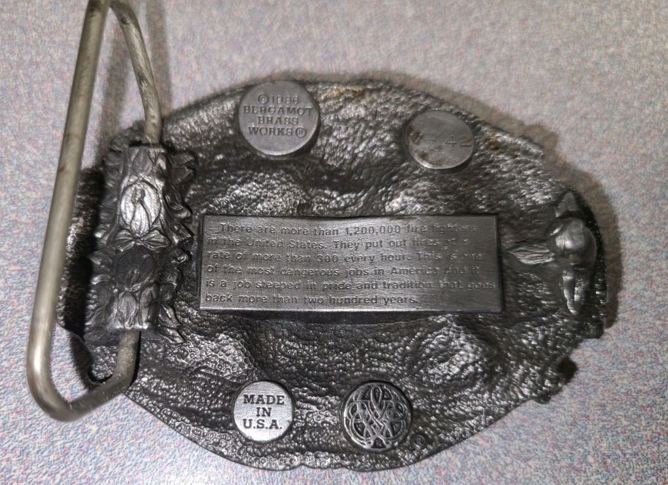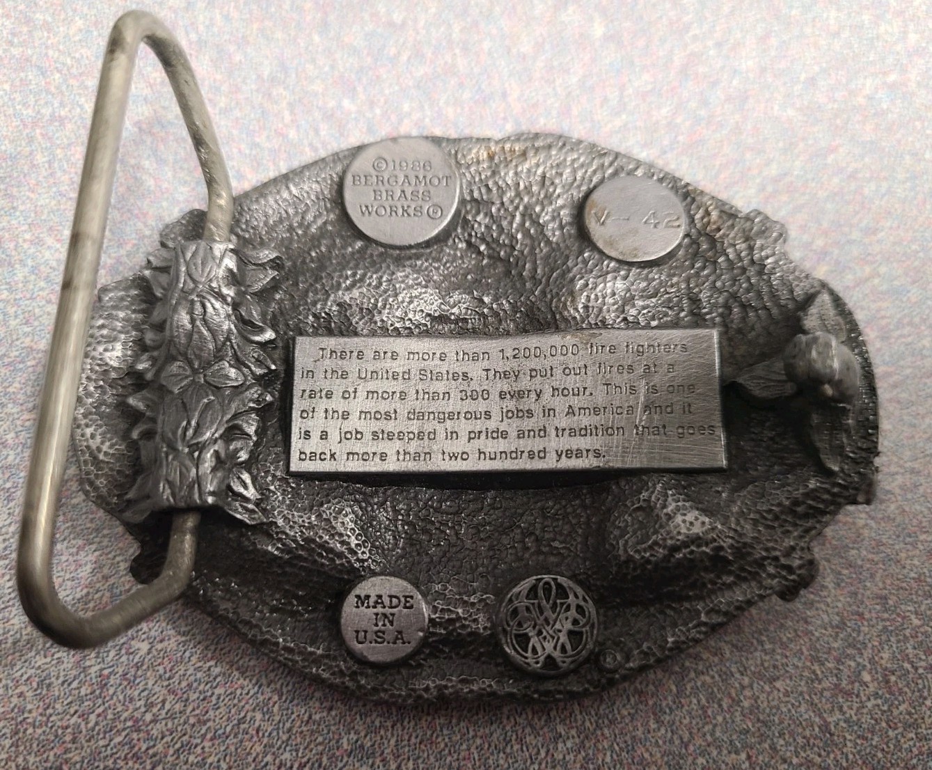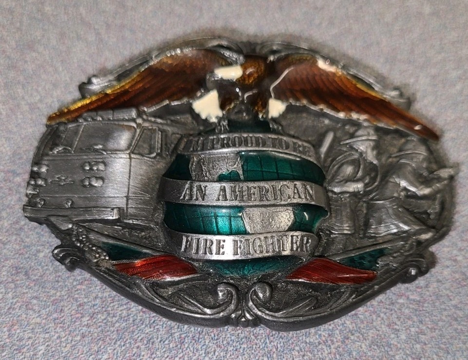 Vtg Belt Buckle Proud to Be An American Fire Fighter 1986 Bergamot Made In USA.