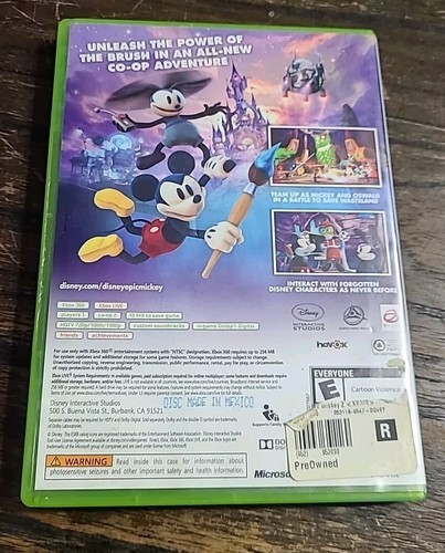 This game is rated E for Everyone and published by Disney Interactive. It falls under the Action Adventure genre and is specifically designed for Microsoft Xbox 360. The package includes the case and disc for your convenience. Get ready for an unforgettable adventure with Mickey and Oswald in Epic Mickey 2: The Power of Two.