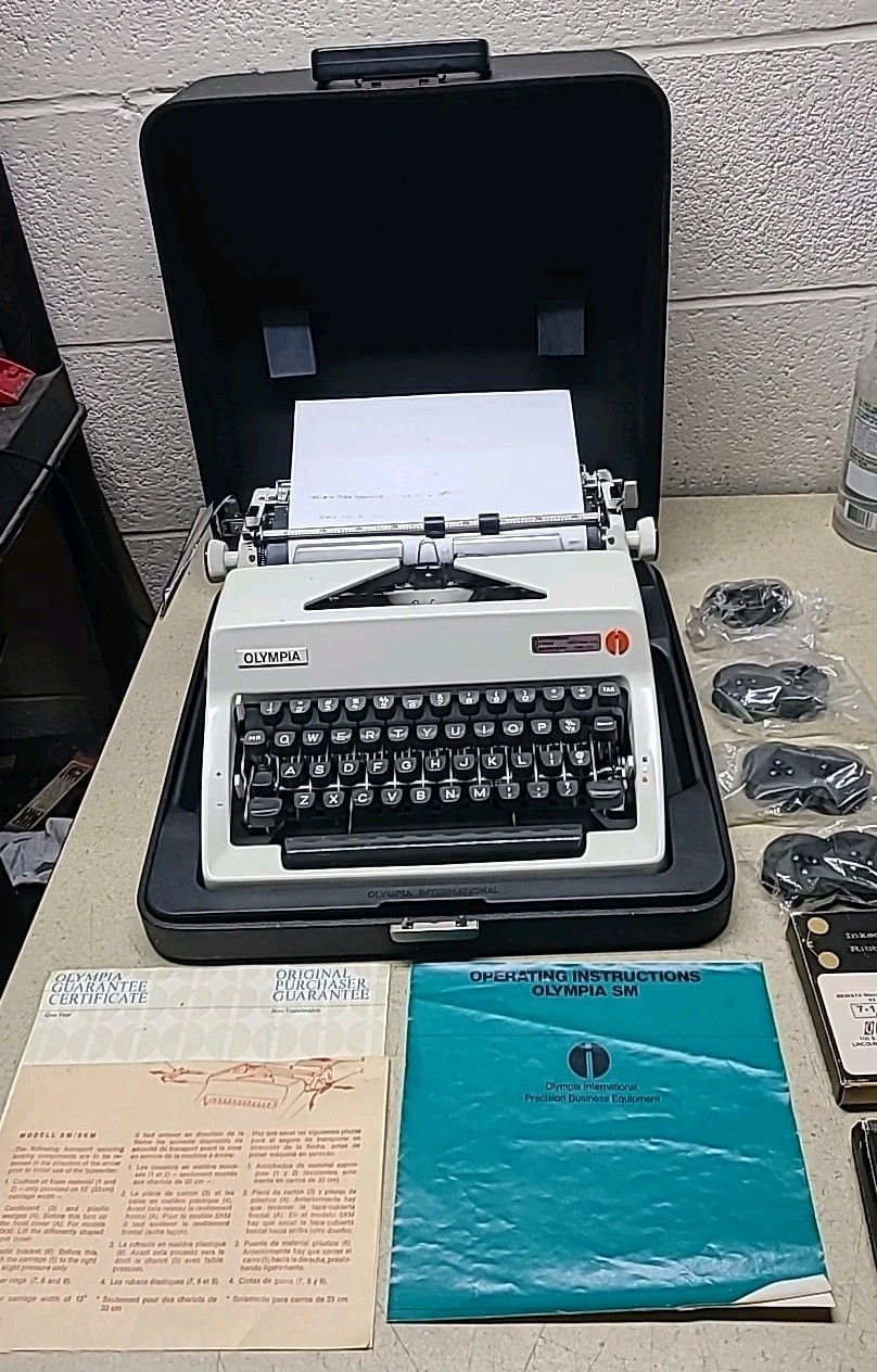 Vtg Olympia Deluxe Typewriter White W/Case, and 49 similar items