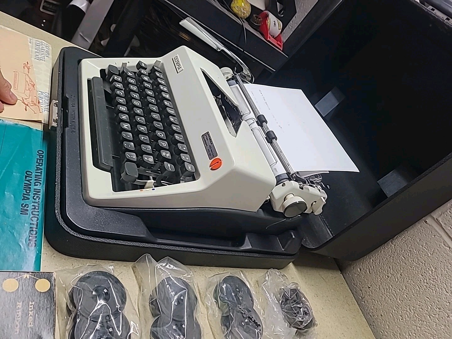 VTG OLYMPIA DELUXE TYPEWRITER White W/Case, Manual & Extra Ribbons