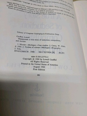 MASQUERADE By LOWELL CAUFFIEL 1988 Doubleday 1st Edition TRUE MURDER STORY Book