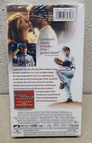 This special edition VHS tape is brand new and still sealed, making it a perfect addition to any movie collection. It features closed captioning and comes with no former rental markings. The tape showcases Kelly Preston as the leading lady alongside Kevin Costner, who gives a remarkable performance in this classic baseball movie.