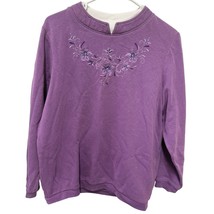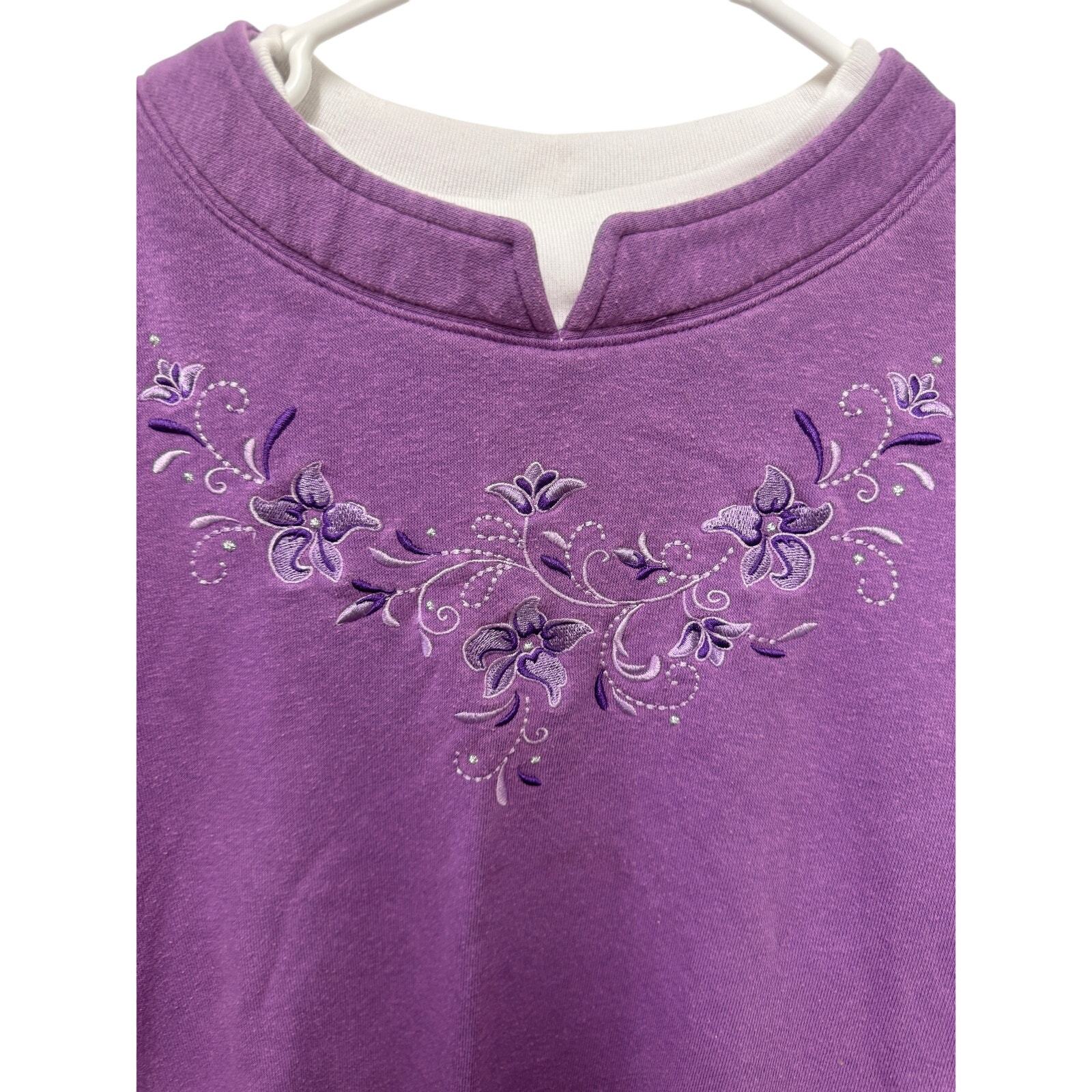 ? Vintage Floral Embroidered Purple Sweatshirt Pullover USA L