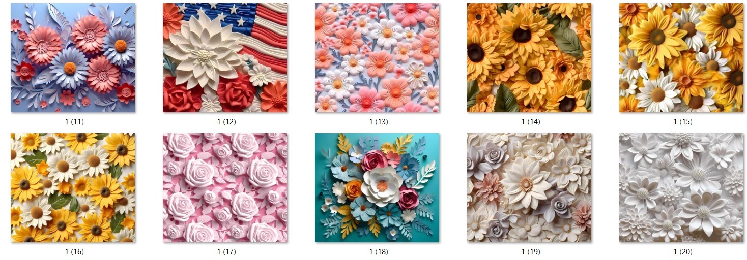 Introducing our floral ready to press sublimation transfer bundles of 10 design transfers, Choose from 14 bundles of beautifully colored 3D flowers. These beautiful designs are perfect for any project they are printed 10.6x8.2 inches in size.