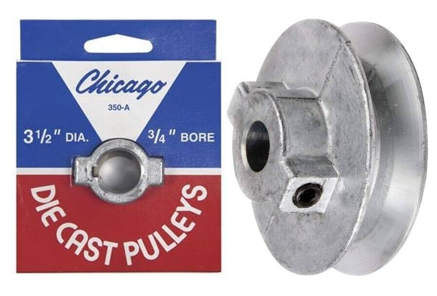V-Groove Pulley 3-1/2'' Dia. x 3/4'' Bore, Chicago Die Cast Pulleys 350-A (2-PK)
