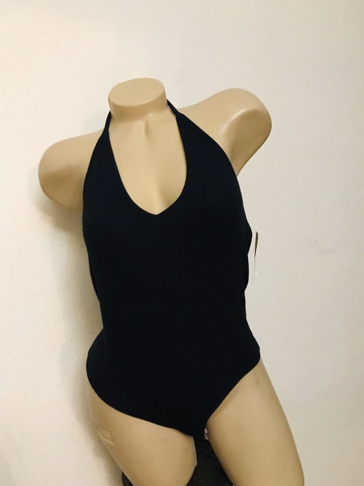 ATM ANTHONY THOMAS MELILLO Ribbed stretch-Micro Modal halterneck thong bodysuit NWT Large