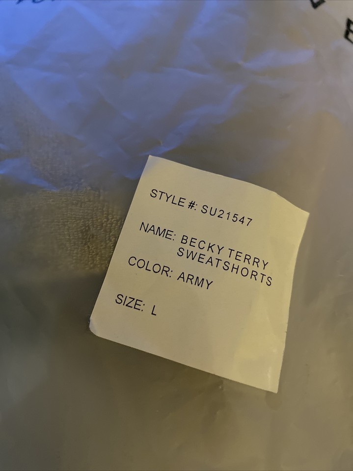 Generation Love BECKY TERRY SWEATSHORTS Army Shorts Large NEW NWT.