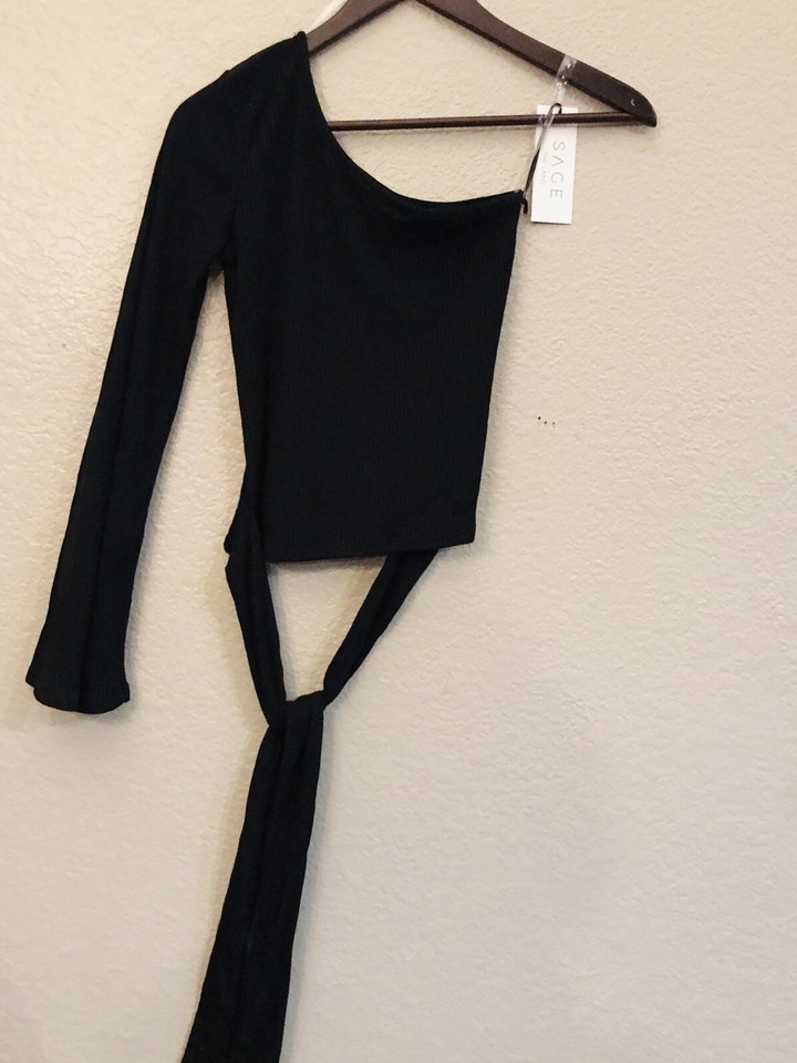 Sage the Label one shoulder Queen Black Top NWT new medium. Condition is New with tags. Shipped with USPS First Class Package.