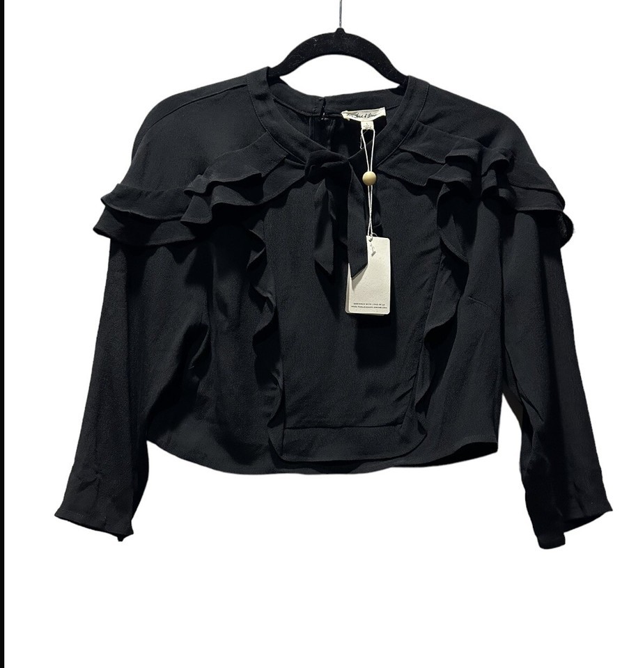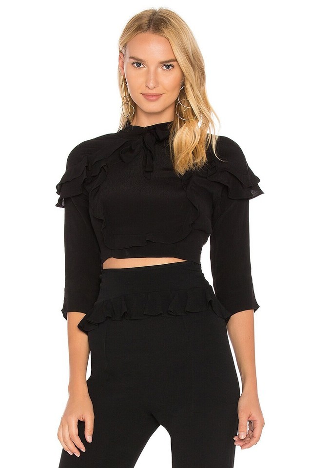 For Love and Lemons Revolve Poppy Ruffle Cropped Top Black Large NEW NWT.