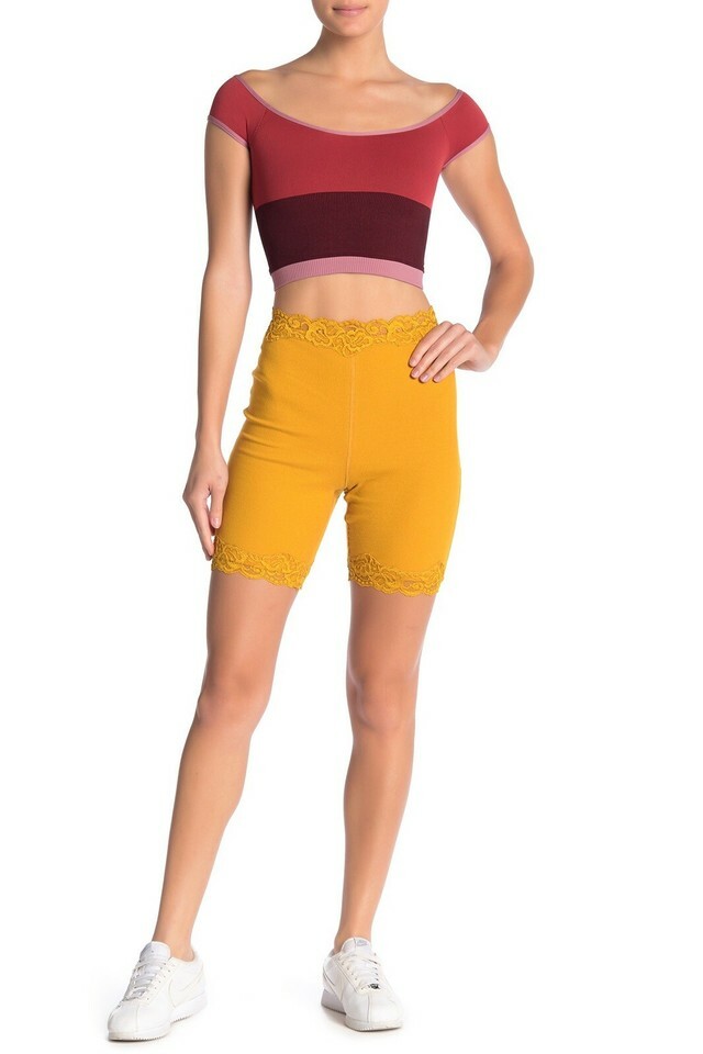 FREE PEOPLE INTIMATELY GOLD LACE TRIM HARLOW BIKE SHORTS NWT NEW SMALL