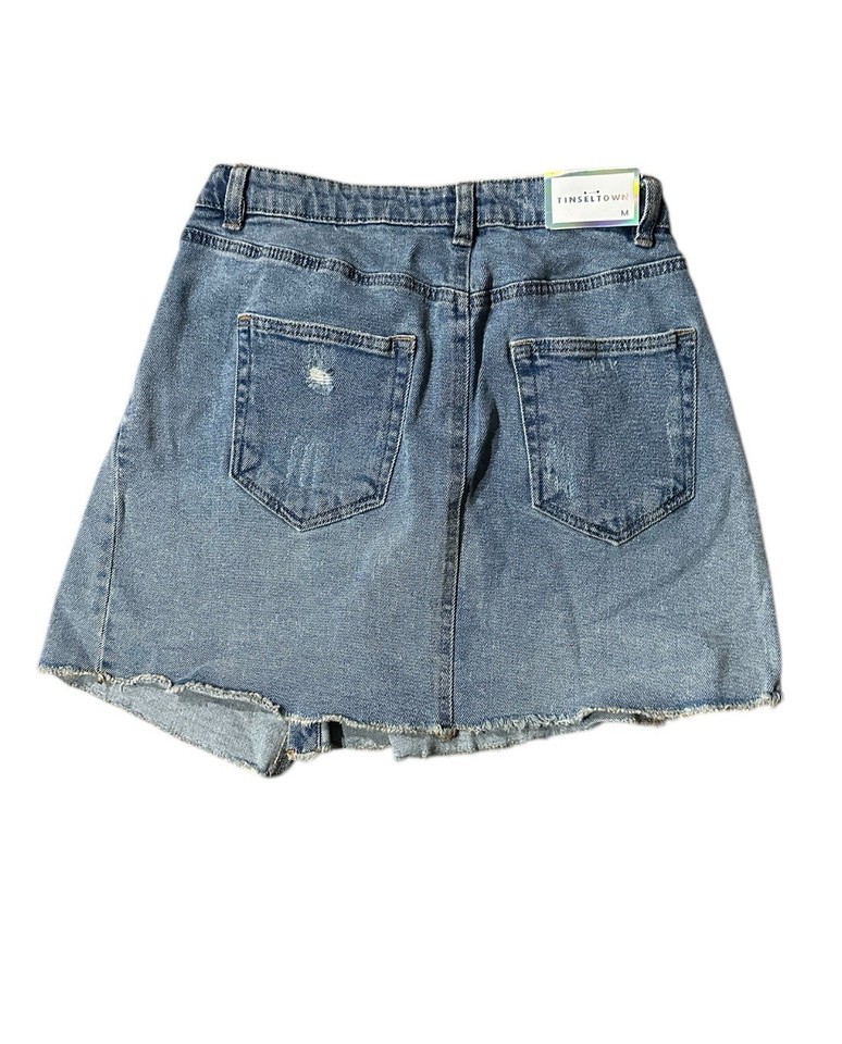 Tinseltown Asymmetrical Frayed Hem Jean Skirt Denim Medium NEW NWT