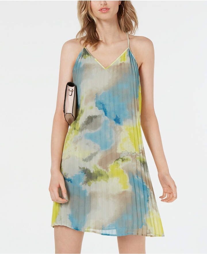 Bar III Women's Watercolor Tie-Dye Pleated Dress Watercolor Sky Medium