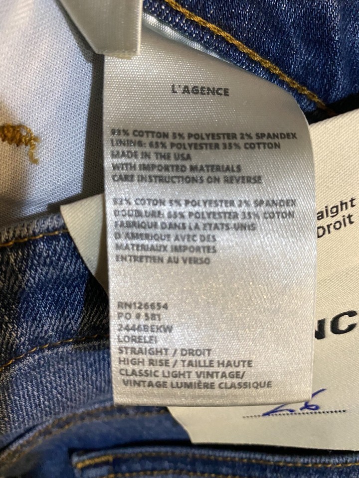 L’AGENCE Lorelei Ultra High Rise Straight Classic Light Vintage Sz 26 NEW NWT