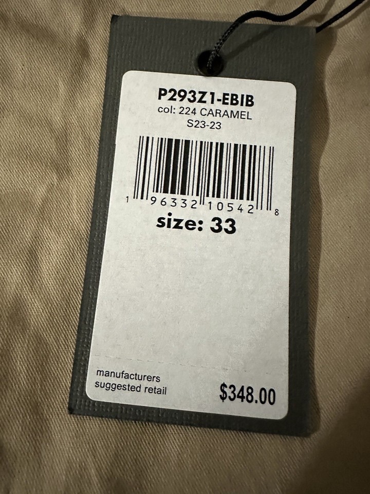 John Varvatos Motor City Pants Caramel Sz 33 NEW NWT REG $348 inseam approx 32.5 inches