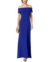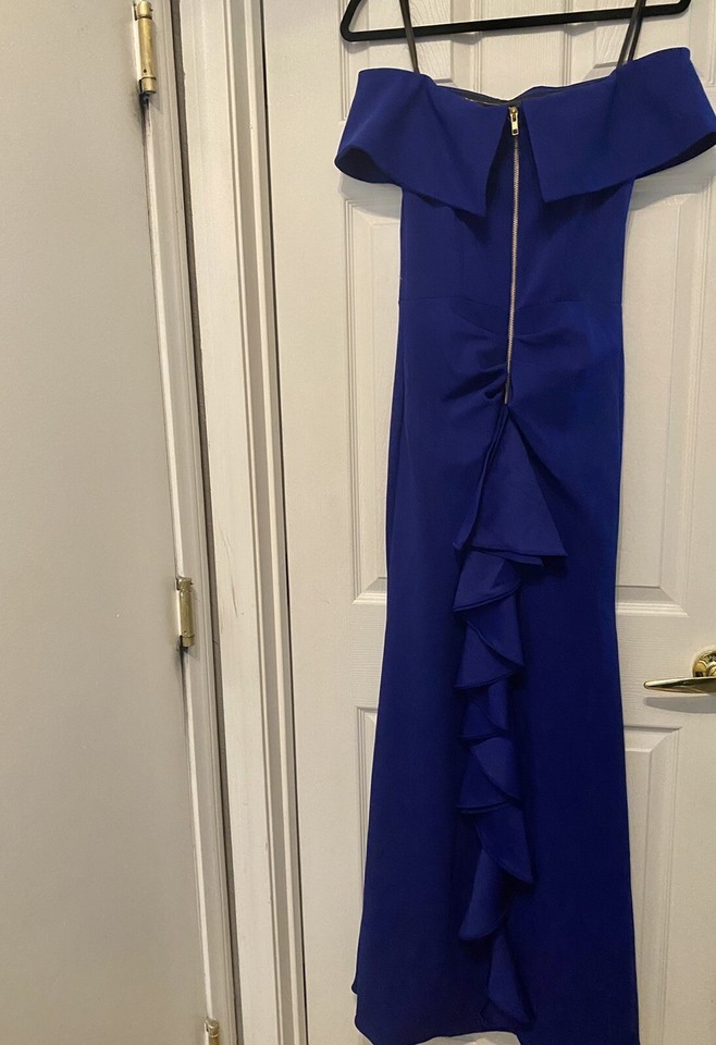 Betsy & Adam Blue Ruffled Back Off The Shoulder Gown Dress Sz 4 NWT New