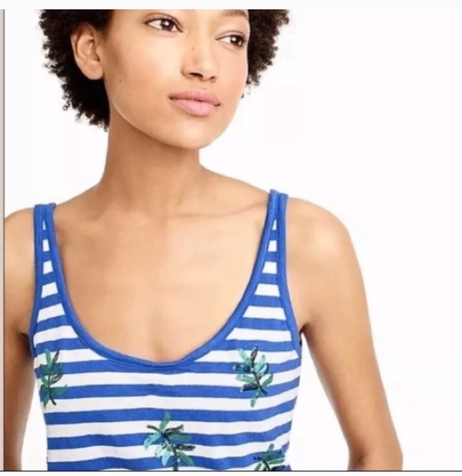 J Crew Palm Sequin Top Blue White Striped and 50 similar items