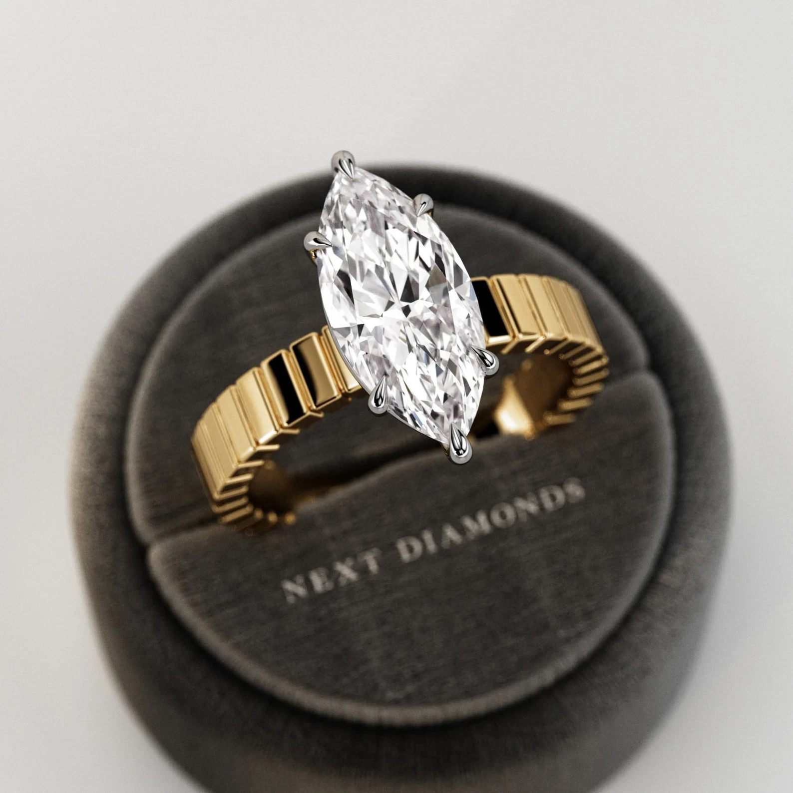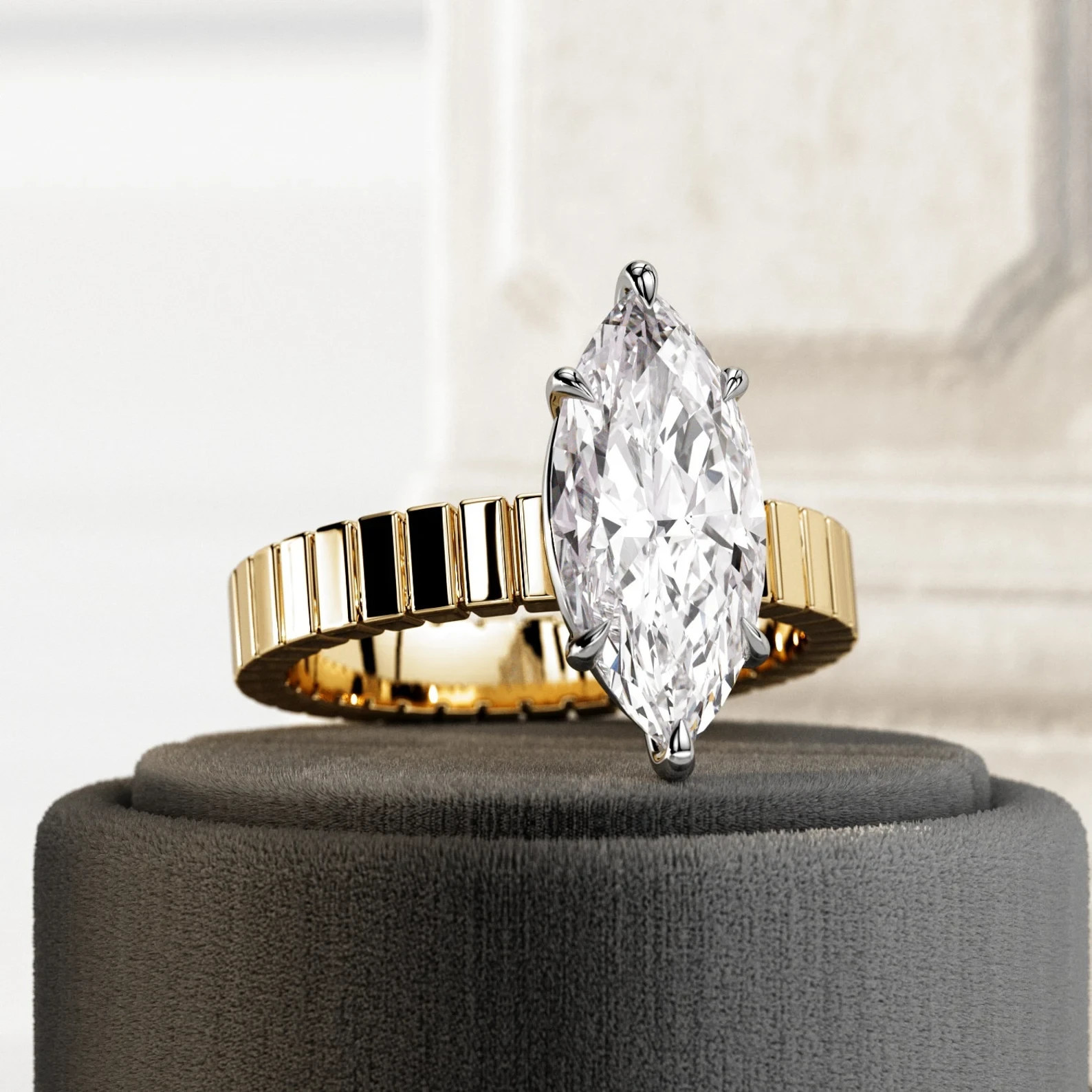 3 Carat Marquise E VS1 Lab Grown Diamond Wide 3.5 mm Cigar Band Engagement Ring