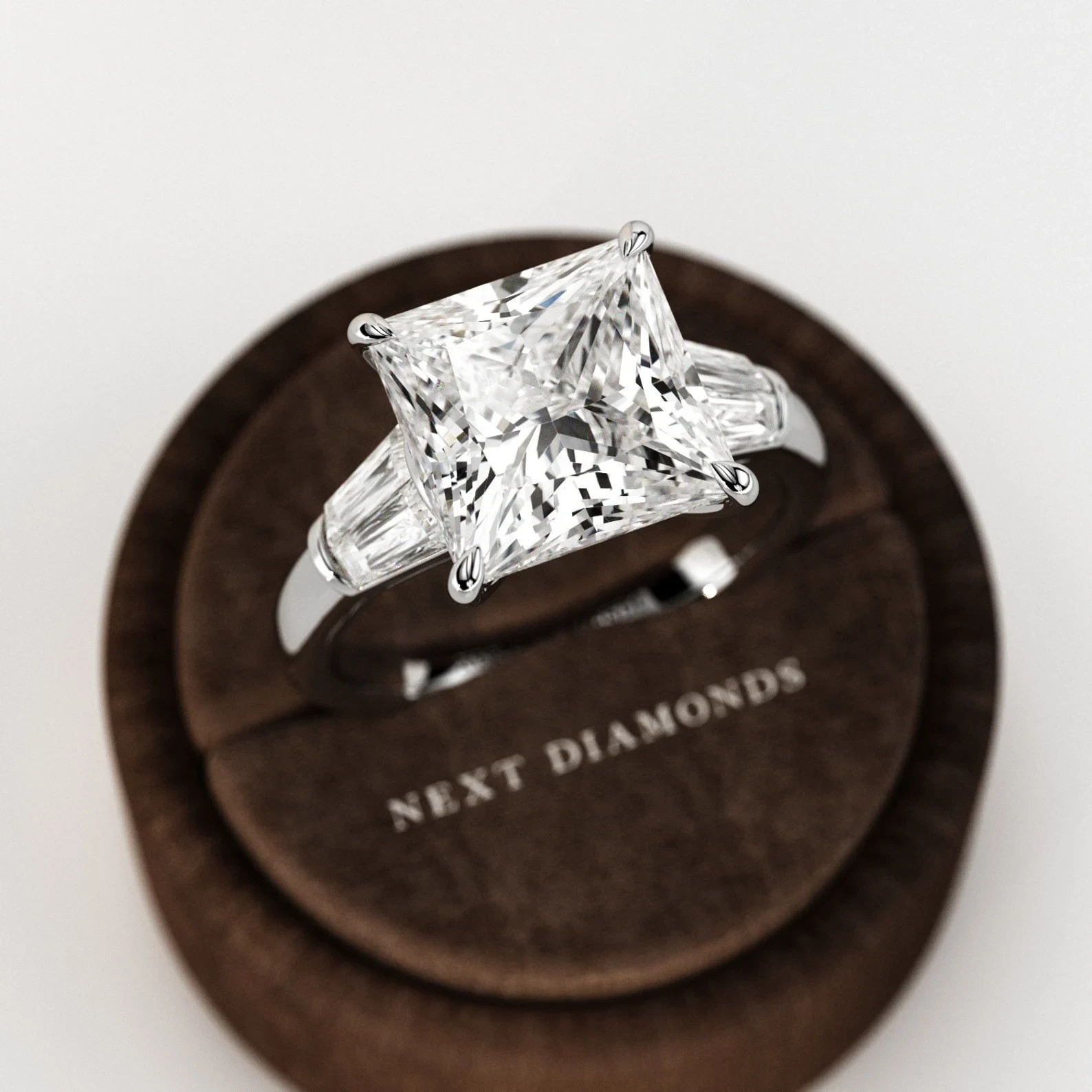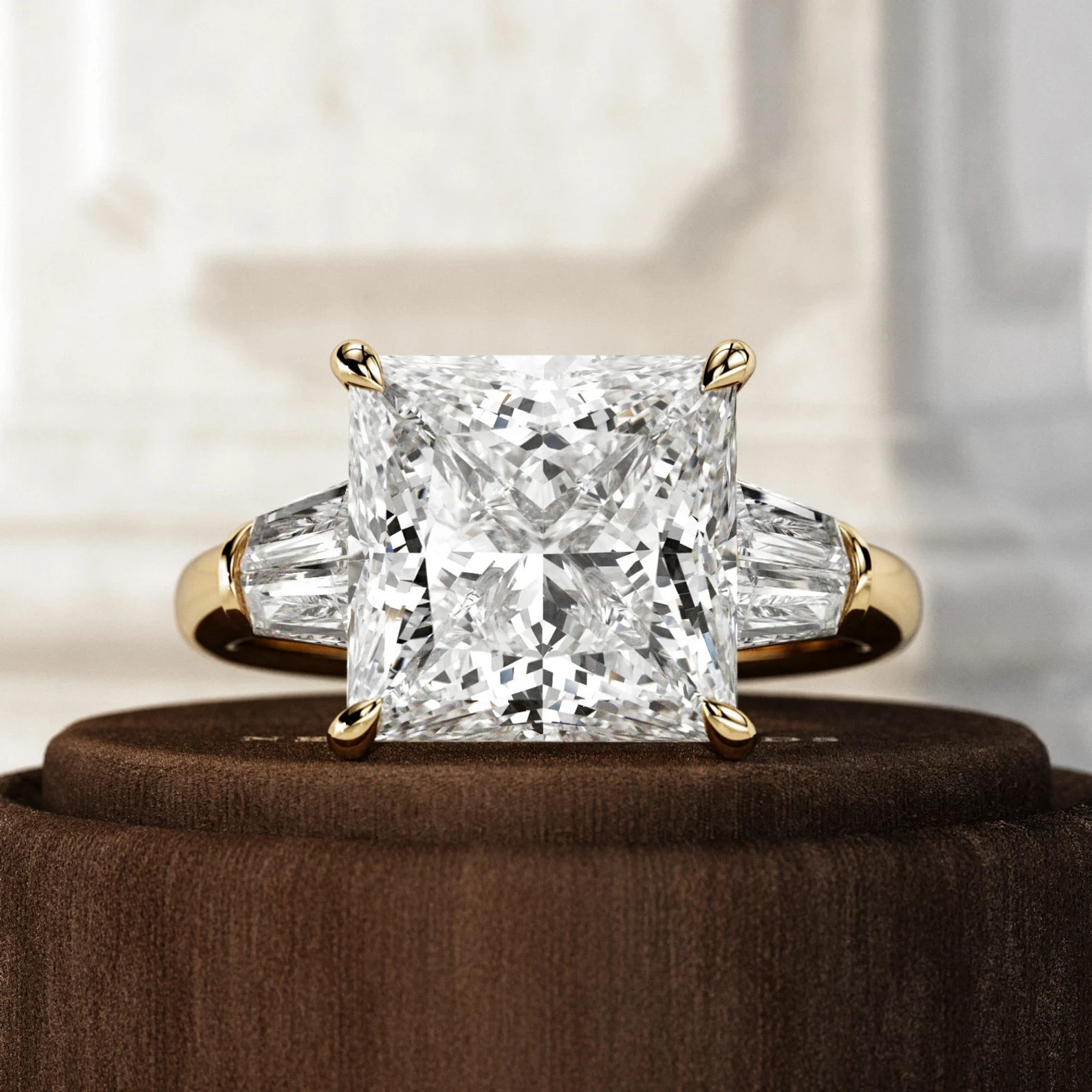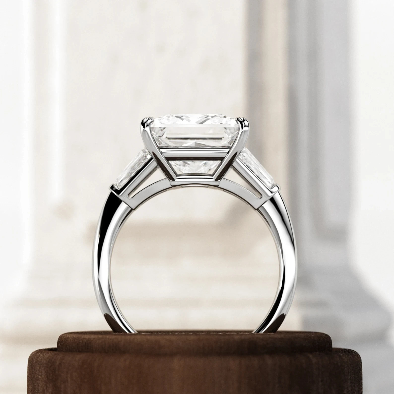 5 Ct Princess Cut E VVS2 Lab Grown Diamond Tapered Three Stone Engagement Ring
