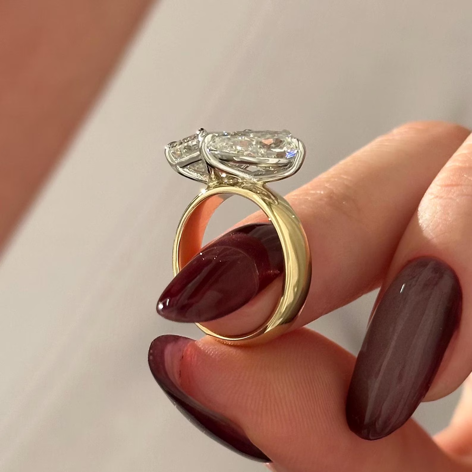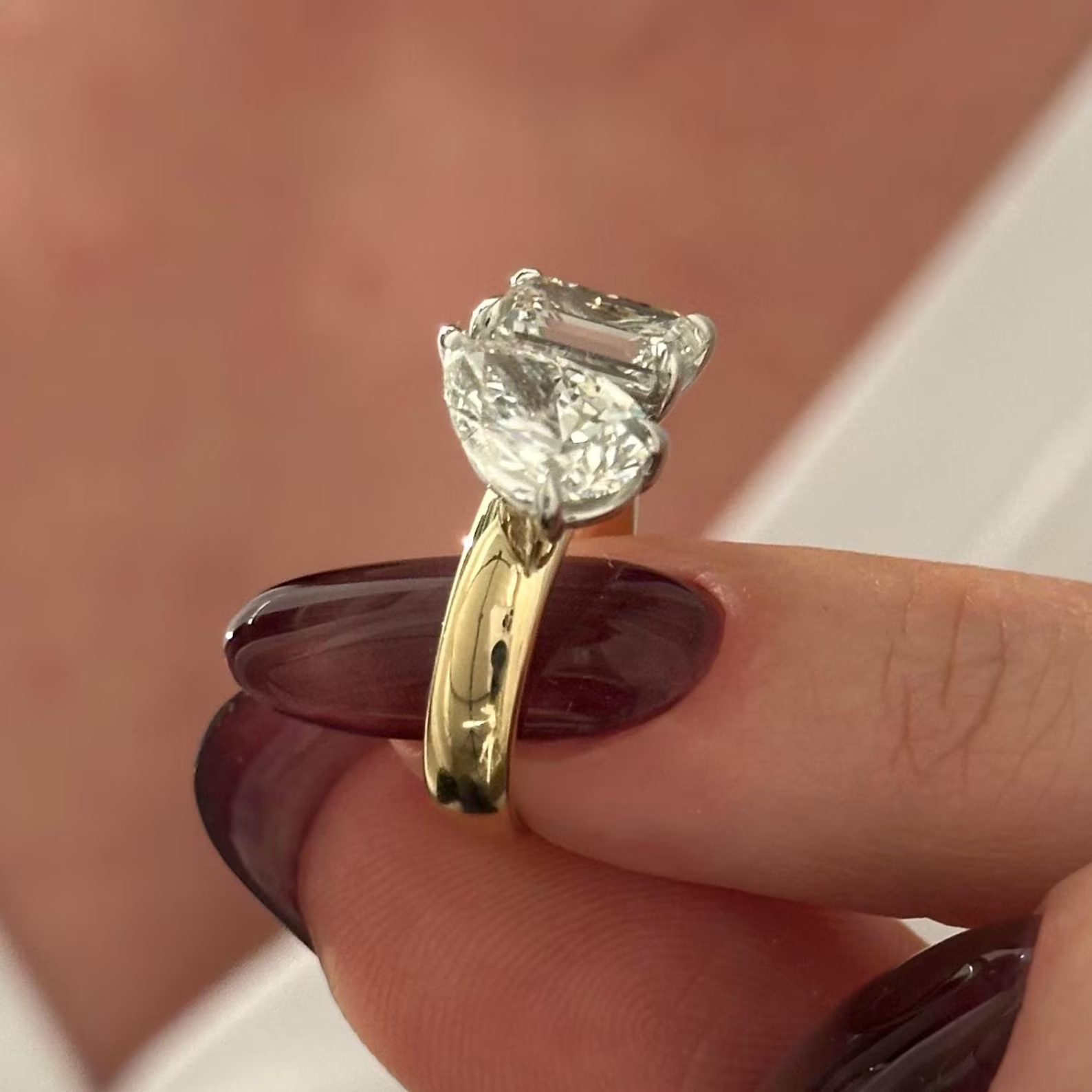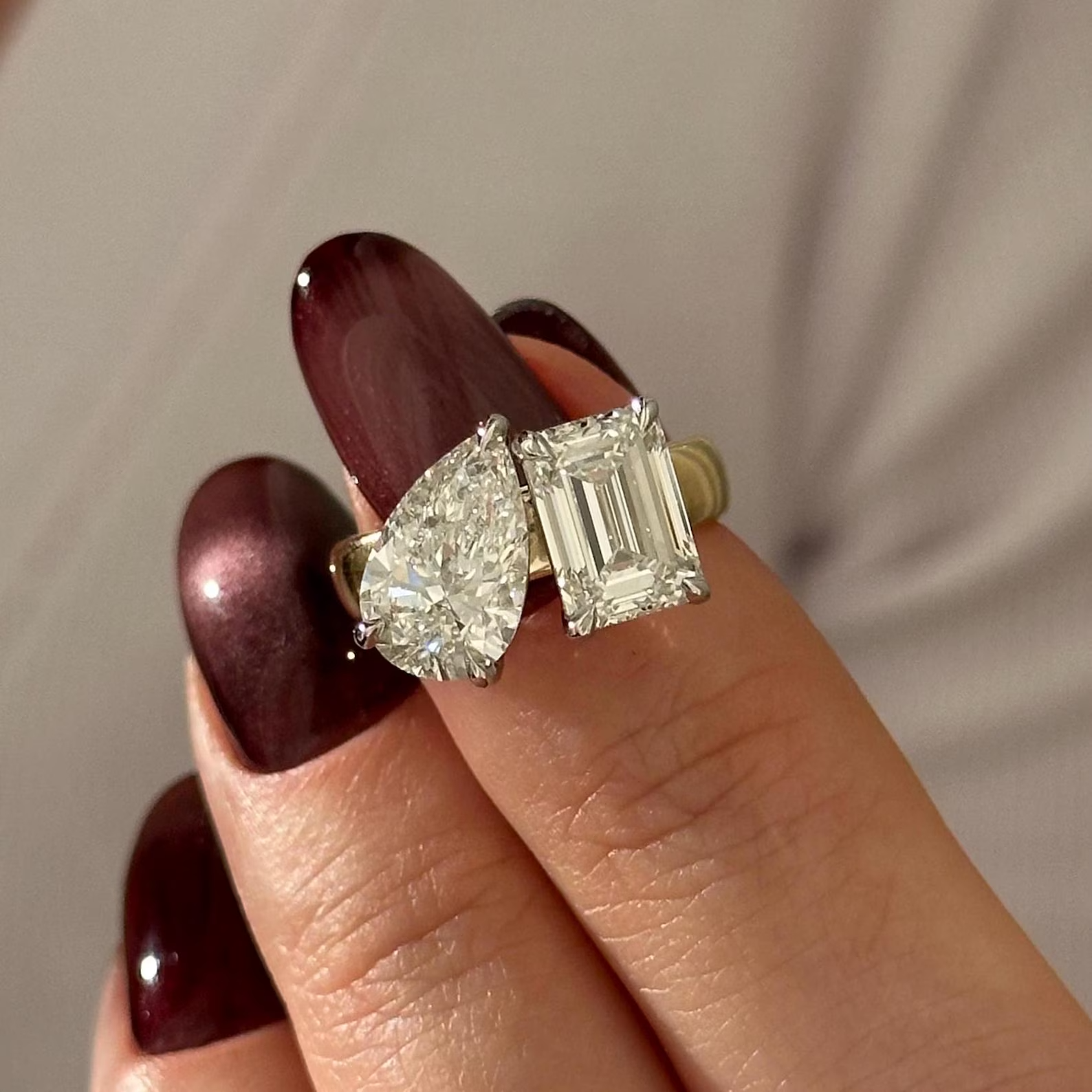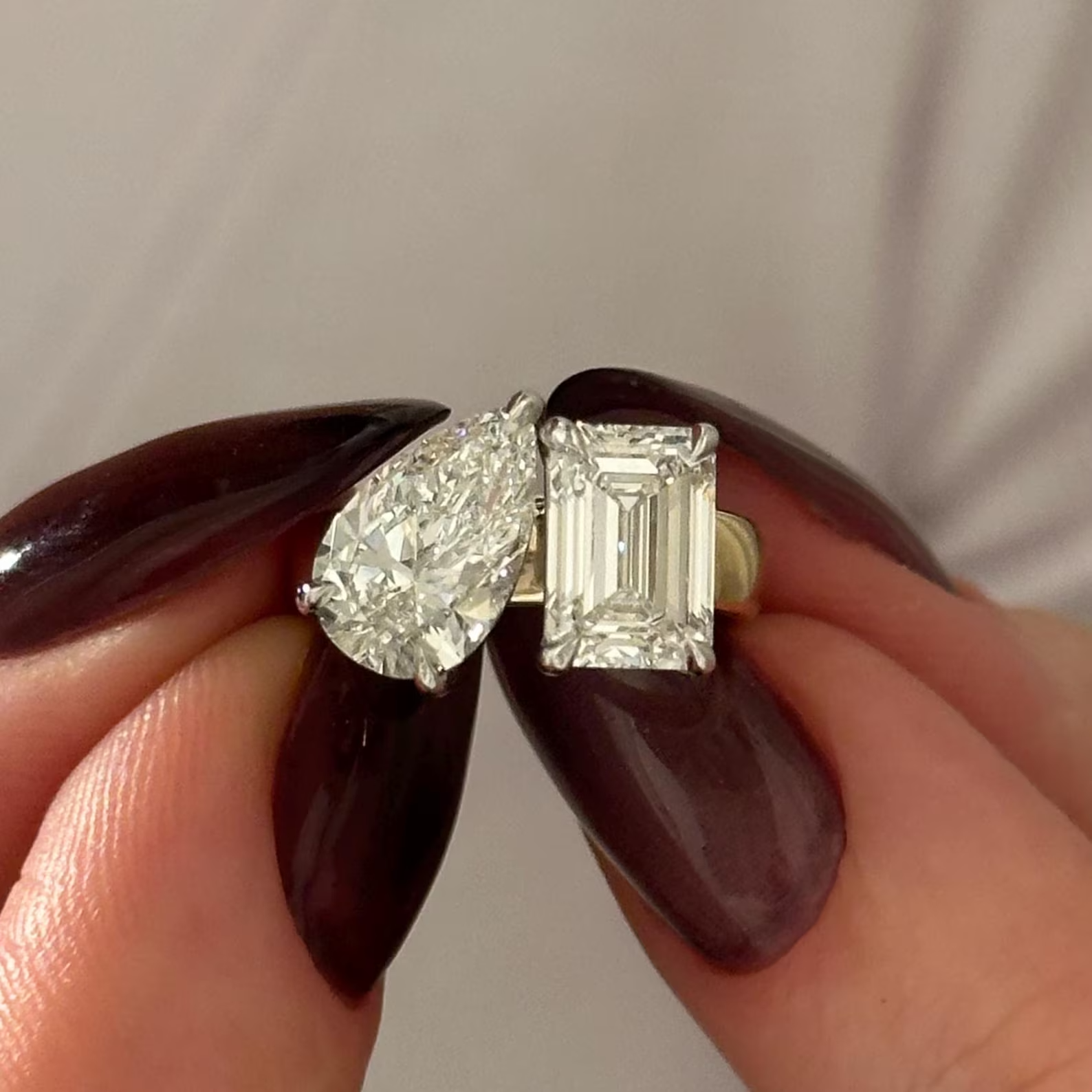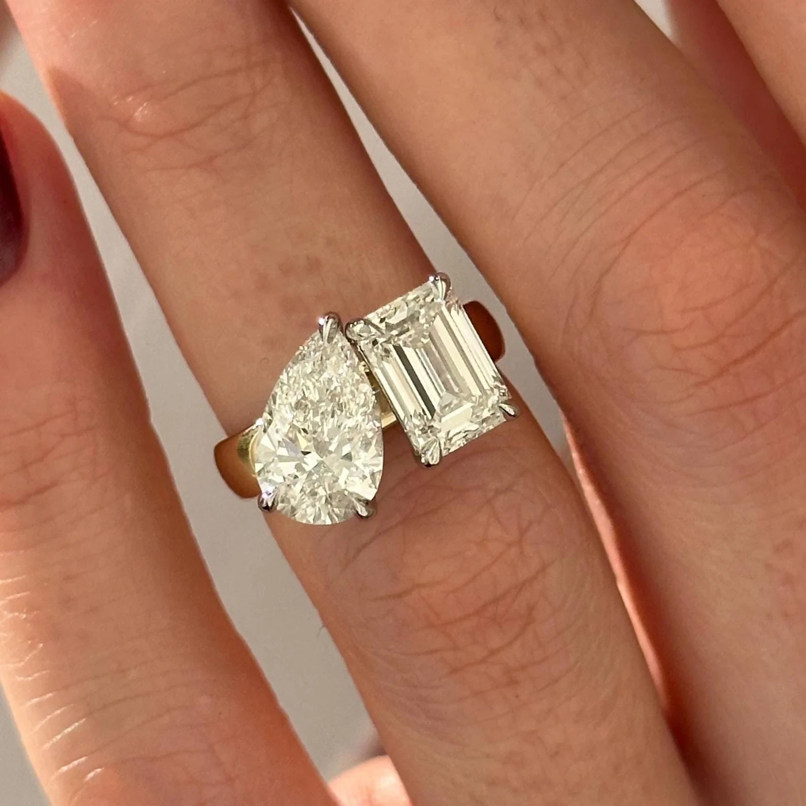 4 Carat E VVS2 Toi et Moi Emerald and Pear Cut Lab Grown 2 Stone Diamond Ring
