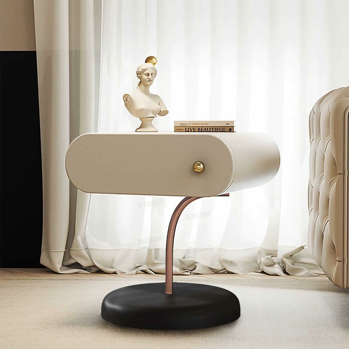 Italian Minimalist Cream Nightstand with and 50 similar items