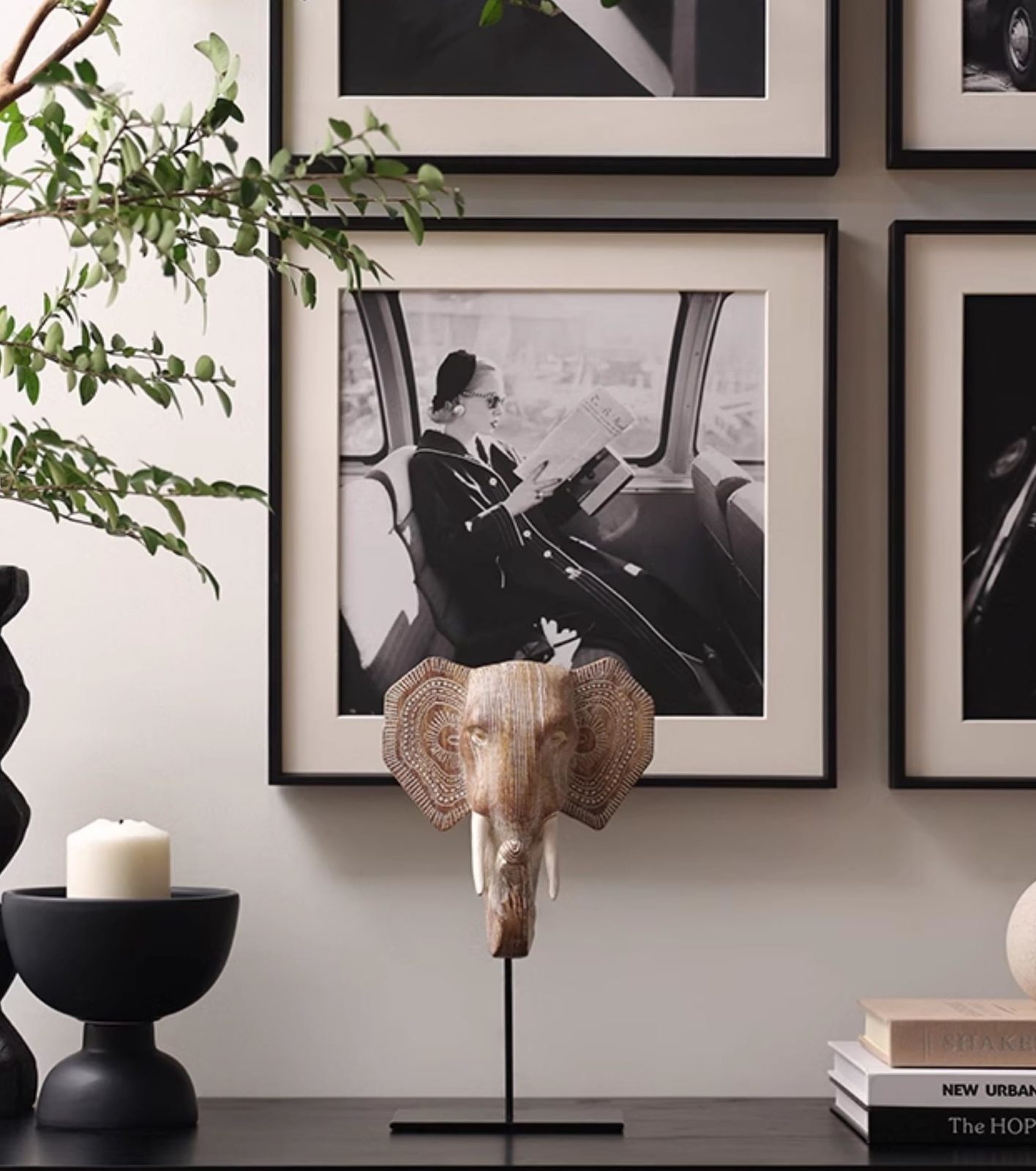 interoknack Wooden Elephant Sculpture on Stand, Handcrafted African Art Desk Dec
