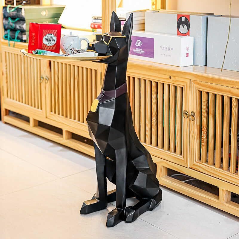 interoknack Large Geometric Doberman Side Table with Storage Tray, Polygonal Dog
