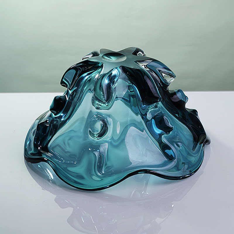 Product description: Elevate your living space with this breathtaking oversized crystal glass fruit bowl from Interoknack. The stunning teal coloration captures the essence of tropical waters, creating an ever-changing display as light dances across its wave-like edges. At 11.6 inches in diameter and 6.2 inches tall, this substantial piece commands attention whether gracing a coffee table or serving as a dining room centerpiece. The bowl's organic curves and flowing design demonstrate exceptional artistry, while its hefty 6.4-pound weight ensures stability and speaks to its premium quality. Intricate bubble and swirl patterns within the thick crystal glass add mesmerizing depth, transforming this functional serving piece into a sculptural masterpiece. The generous size accommodates abundant fruit displays, while the artistic form maintains its visual impact even when empty. Perfect for sophisticated homes where exceptional design and practicality merge, this oversized bowl serves as both a stunning decorative element and a versatile serving piece that will enhance any contemporary interior.