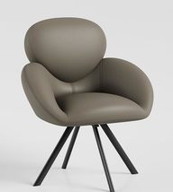 Product description: Transform your space with this luxurious swivel vanity chair that perfectly marries mid-century modern design with contemporary comfort. The chair's generous dimensions of 24.4 inches wide, 28.3 inches deep, and 33.9 inches high create an inviting seating experience, while the 18.1-inch seat height ensures optimal positioning. Wrapped in premium leather available in sophisticated cream, taupe, or cognac tones, this chair features an elegant curved silhouette that cradles you in comfort. The smooth 360-degree swivel mechanism allows effortless movement, making it perfect for vanity tables, dressing areas, or as a statement accent piece. The striking black metal base provides both visual contrast and sturdy support, while the generously padded seat and backrest offer exceptional comfort for extended use. Whether placed in a master bedroom, walk-in closet, or living area, this sophisticated chair combines sculptural beauty with practical functionality. The timeless design and quality construction make it an enduring addition to any refined interior space.