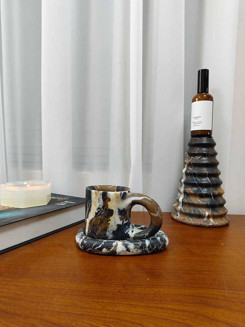 interoknack Natural Marble Coffee Mug Designer Statement Cup with Saucer Set f
