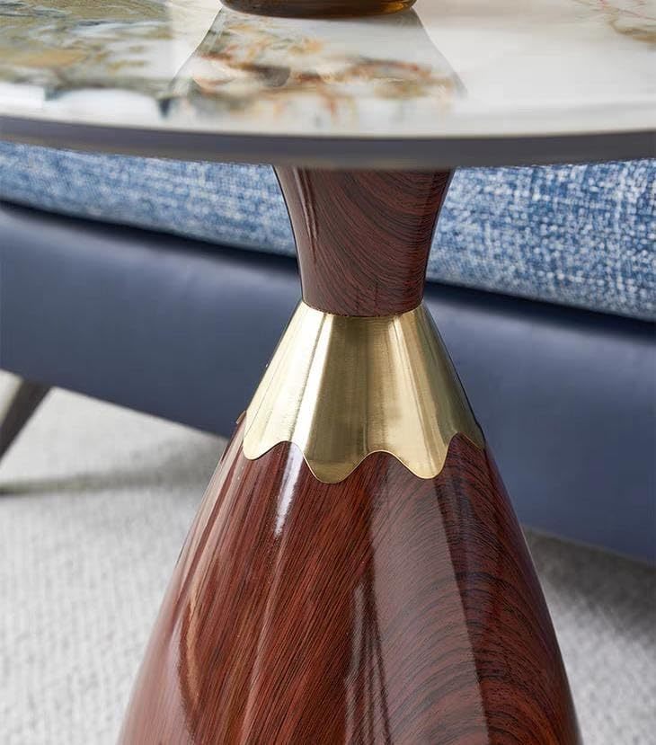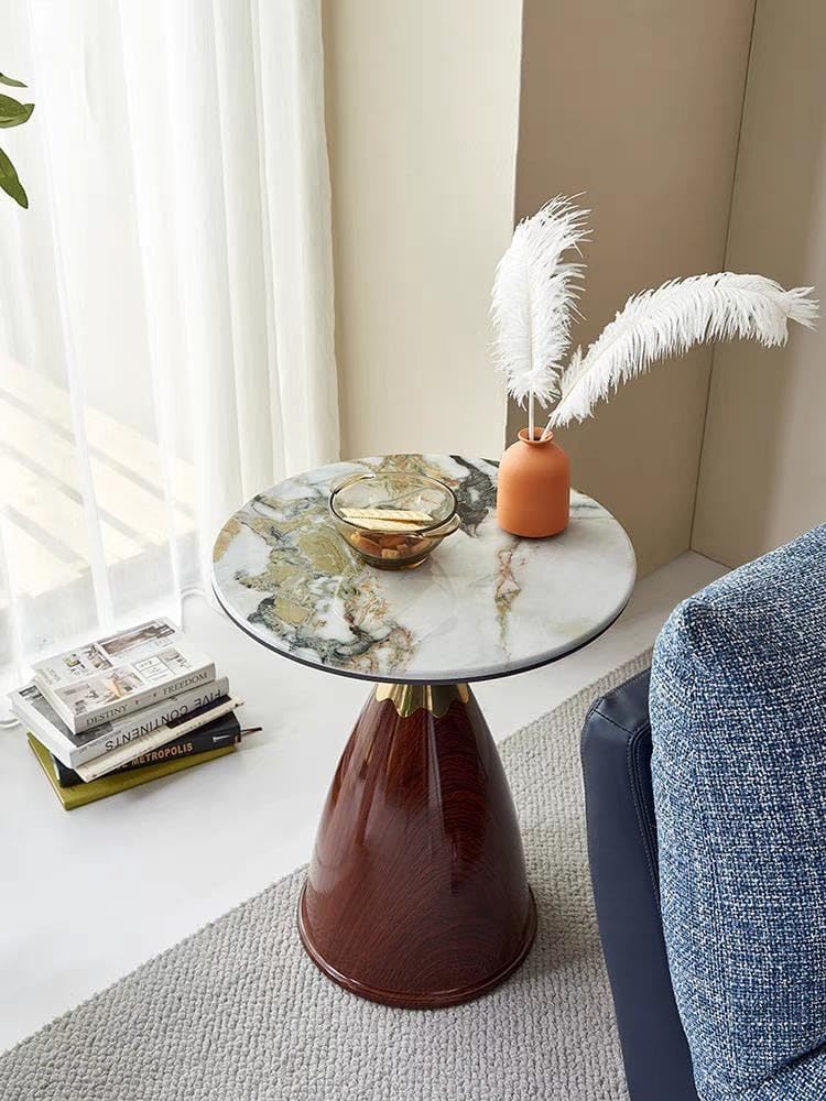 Coffee Table Round sintered Stone Table with Cone Base | Luxury Side Table for
