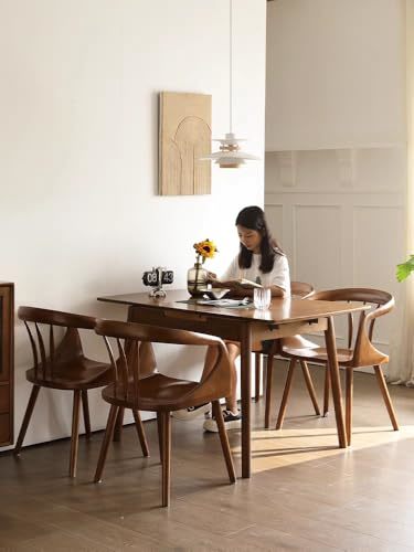Product description: Elevate your interior with this sleek and sculptural mid-century modern wooden dining chair ? a perfect fusion of style, comfort, and craftsmanship. Expertly crafted from solid wood and finished in a rich walnut tone, this chair brings natural warmth and minimalist sophistication to any room. Designed with ergonomics in mind, the curved backrest, sculpted armrests, and smoothly contoured seat offer optimal support for long seating periods, whether you're enjoying a meal, working at a desk, or relaxing with a coffee. Key Features: Premium Craftsmanship: Made from high-quality solid wood for durability and long-lasting elegance. Mid-Century Modern Design: Sculpted curves and seamless lines add a timeless, sophisticated look to any decor. Comfortable Seating: Curved backrest and smooth edges support your posture and promote comfort during extended use. Space-Saving Form: Perfect for compact dining areas, cafes, lounges, or home offices. Sturdy and Stable: Tapered legs ensure solid grounding and an elegant profile. Product Dimensions: Total Height: 78 cm (30.7 in) Seat Height: 43 cm (16.9 in) Seat Depth: 45 cm (17.7 in) Width (Arm to Arm): 48 cm (18.9 in) Note: As this product is handcrafted, slight variations of 1?3 cm may occur.