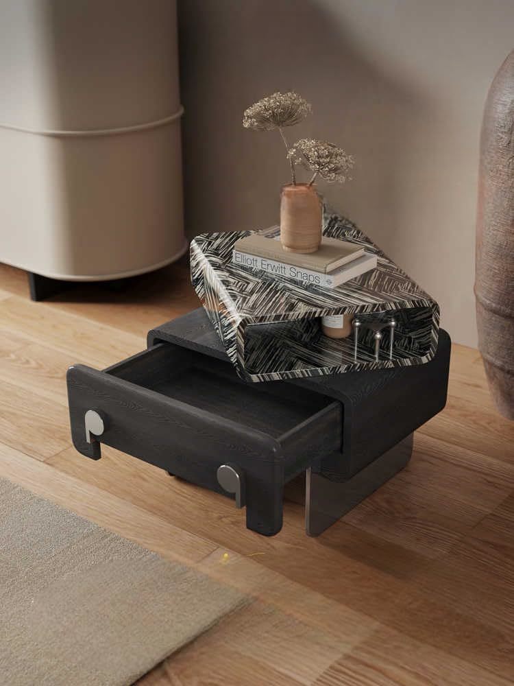 Minimalist Designer Rotating Ash Wood Bedside Cabinet ย Black Compact Modern Nig
