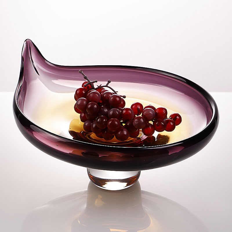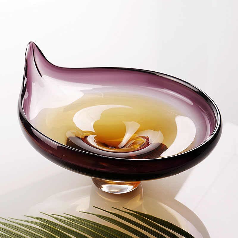 Minimalist Luxury Art Glass Pedestal Fruit Bowl, Handcrafted Purple-Amber Gradie