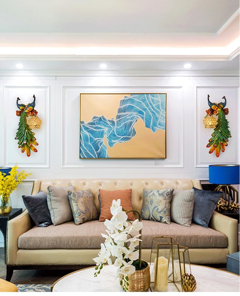 interoknack Peacock Resin Wall Lamp Set of 2, Creative Double-Peacock Colorful S