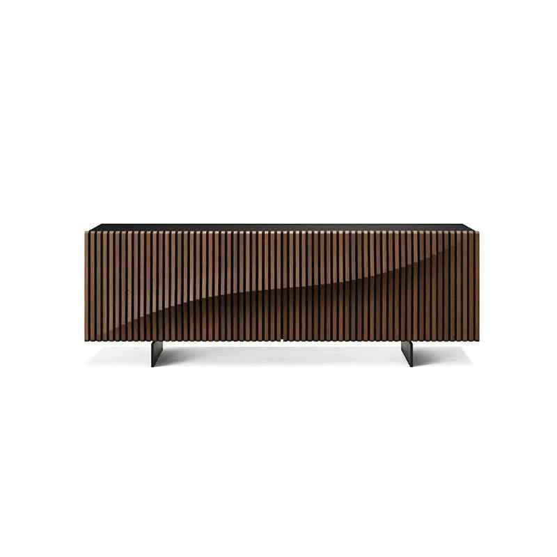 Transform your living space with this stunning walnut sideboard cabinet that masterfully balances form and function. The eye-catching wave-slat facade creates visual intrigue while concealing generous storage space behind its minimalist Italian-inspired design. Measuring 71 inches in length, 17.7 inches in depth, and 28.7 inches in height, this solid wood console commands attention in any room. The natural grain patterns of the walnut construction shine through the contemporary finish, adding warmth and sophistication to your interior. Multiple compartments provide organized storage for everything from dining essentials to media equipment, making it versatile enough for living rooms, entryways, or bedrooms. The clean lines and sculptural elements of this cabinet seamlessly integrate into modern, retro, or designer aesthetics, while its robust hardwood construction ensures lasting durability. Perfect for those who appreciate refined craftsmanship and practical luxury in their home furnishings.