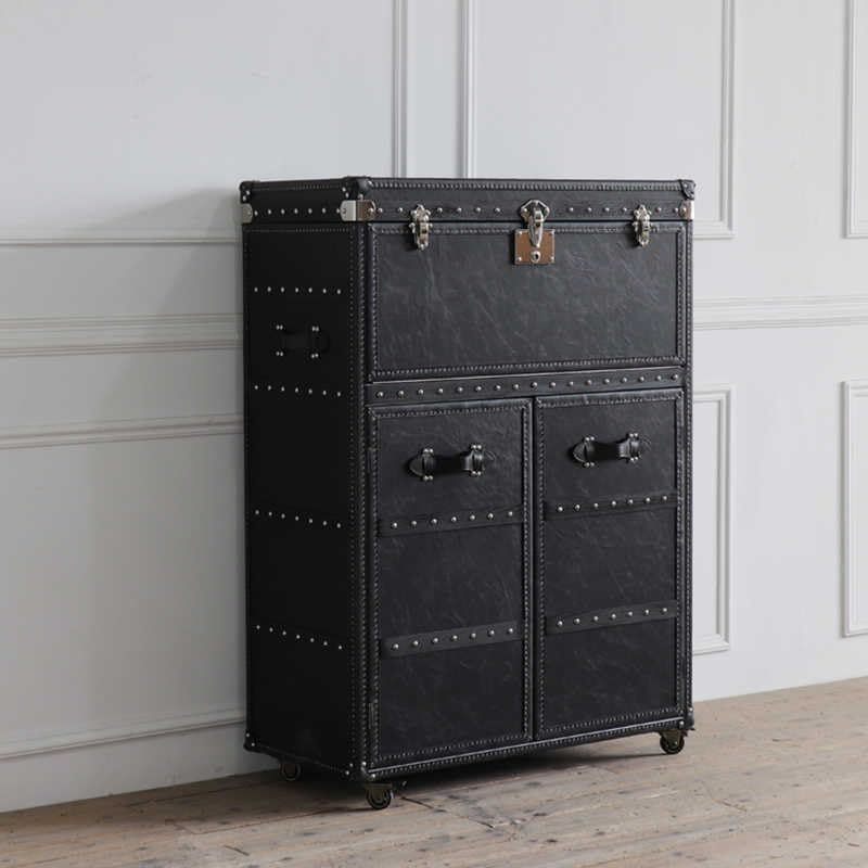 Vintage Industrial Steamer Trunk Bar Cabinet American Style Leather-Wrapped Li