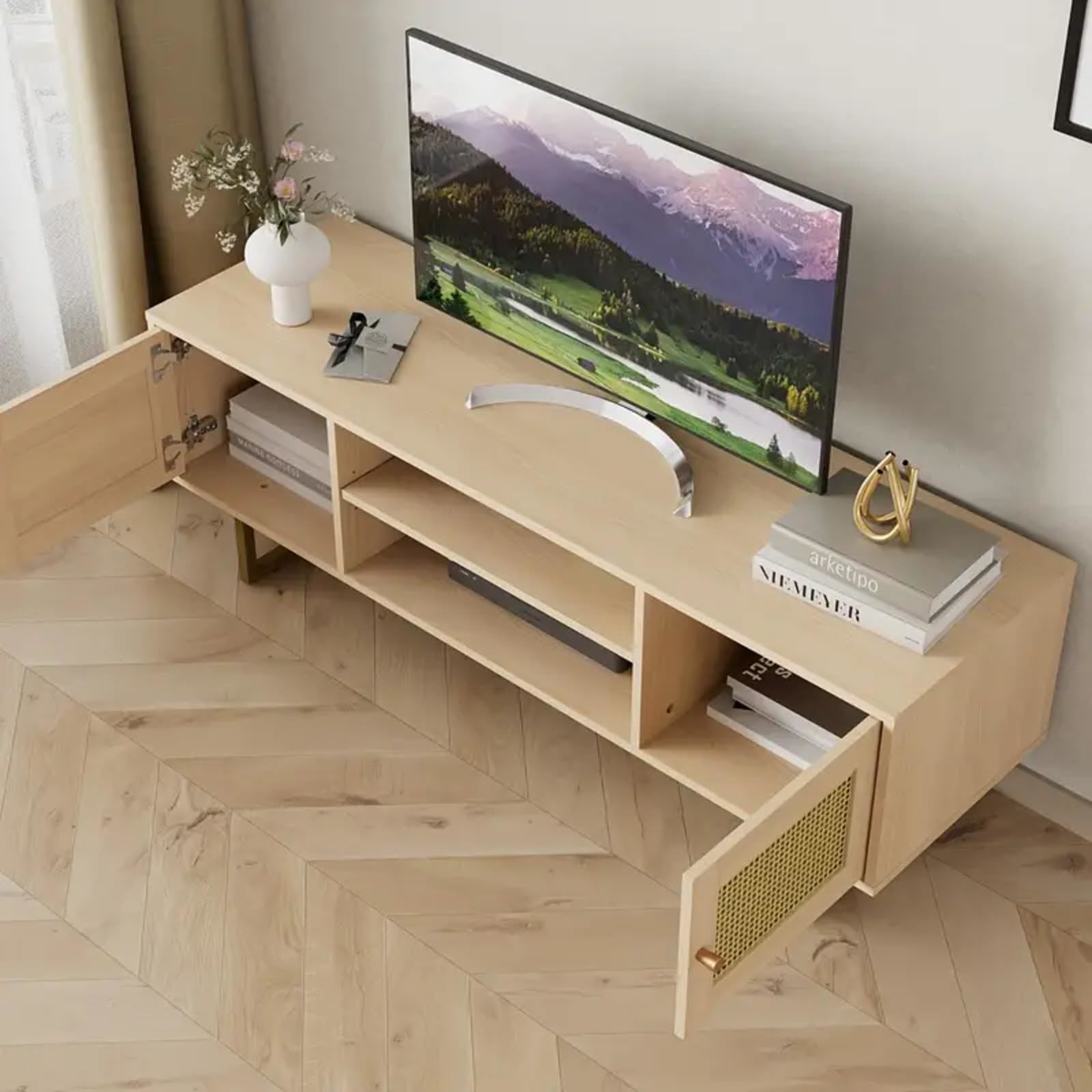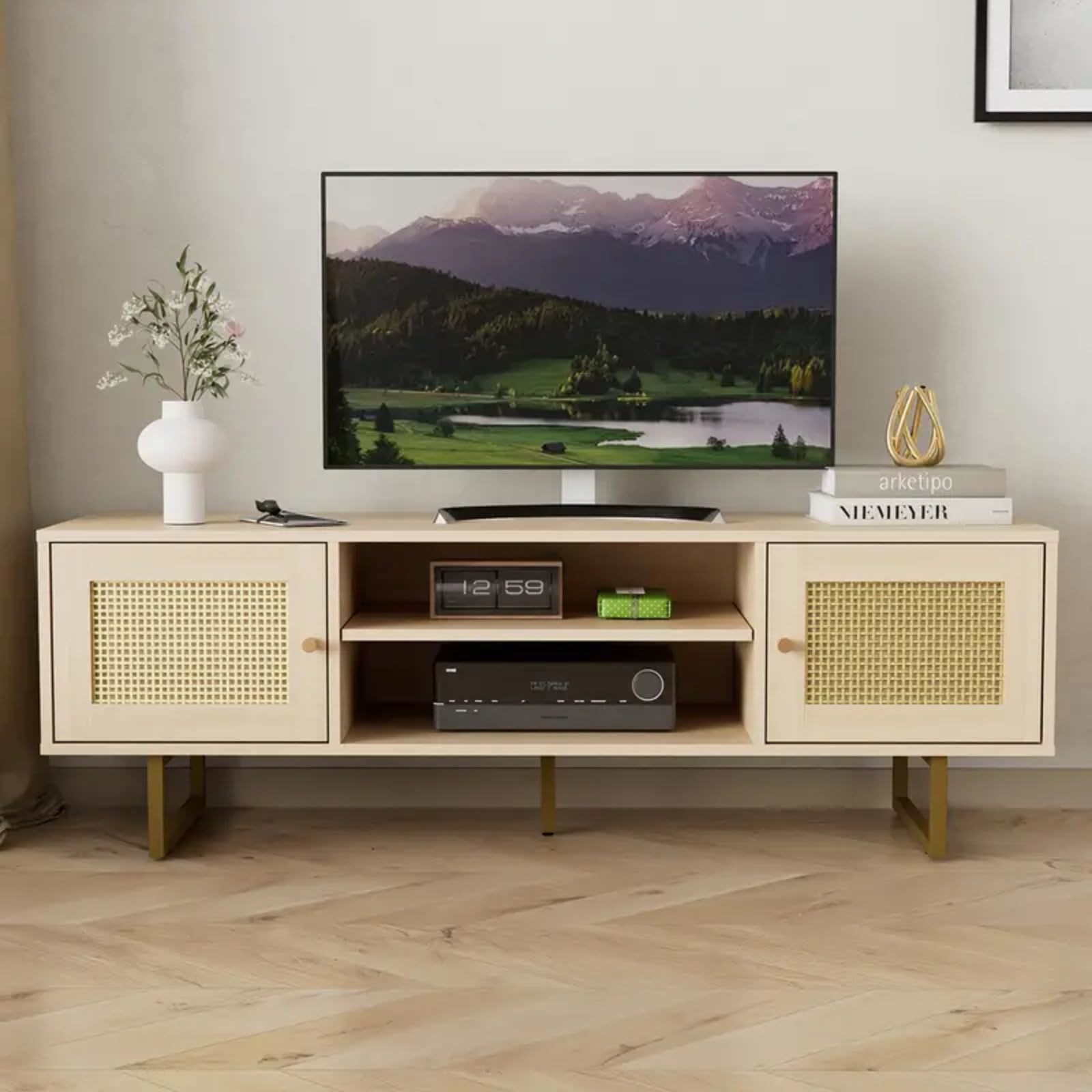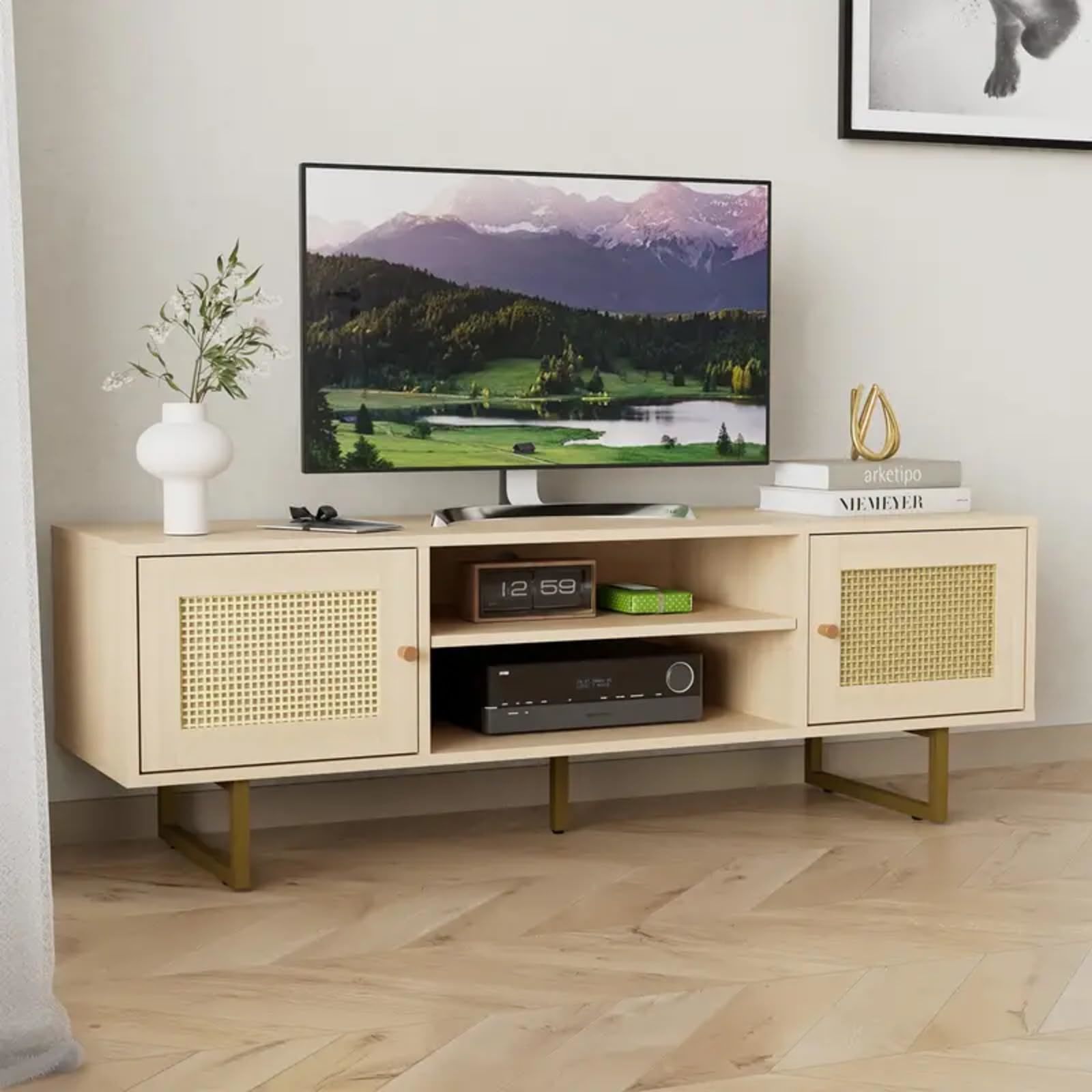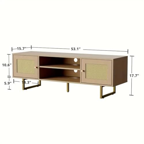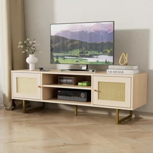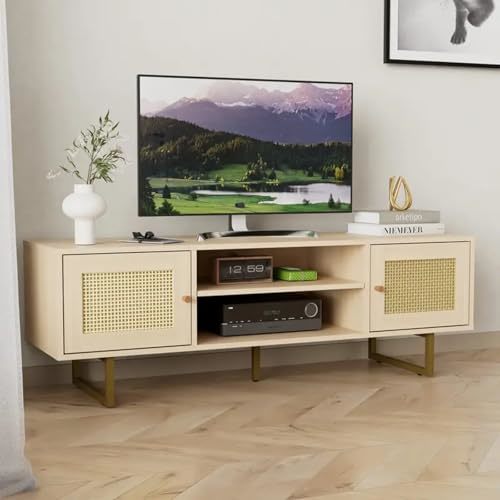 Generic Rattan TV Stand for 55/60/65 Inch TV, Entertainment Center with Adjustab