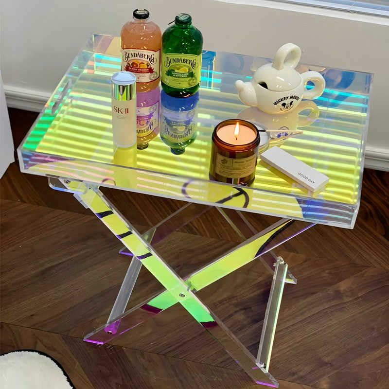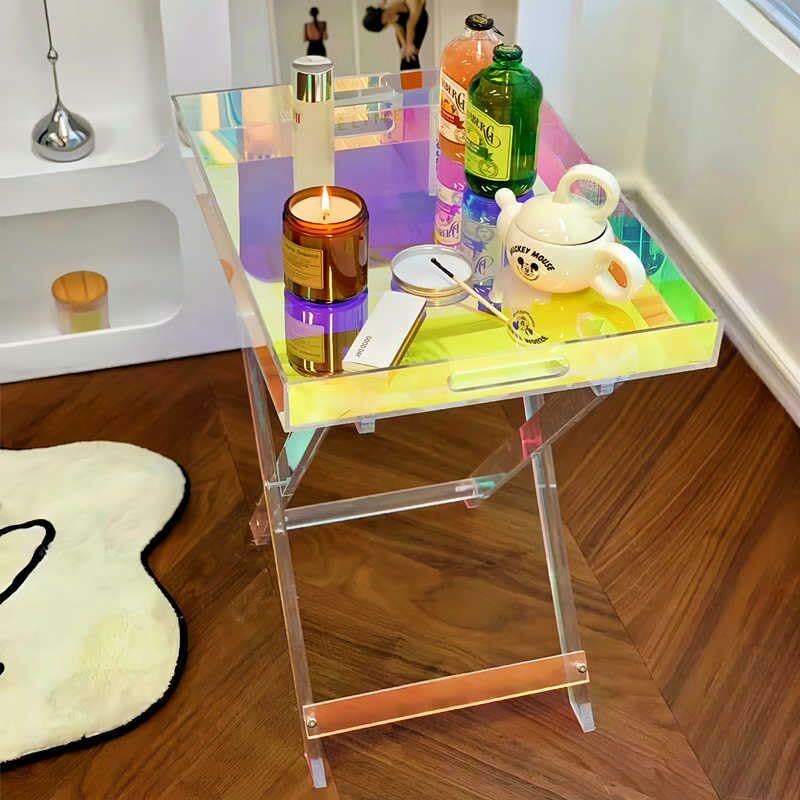 Iridescent Acrylic Folding Tray Table Modern Multifunctional Bedside Coffee Si