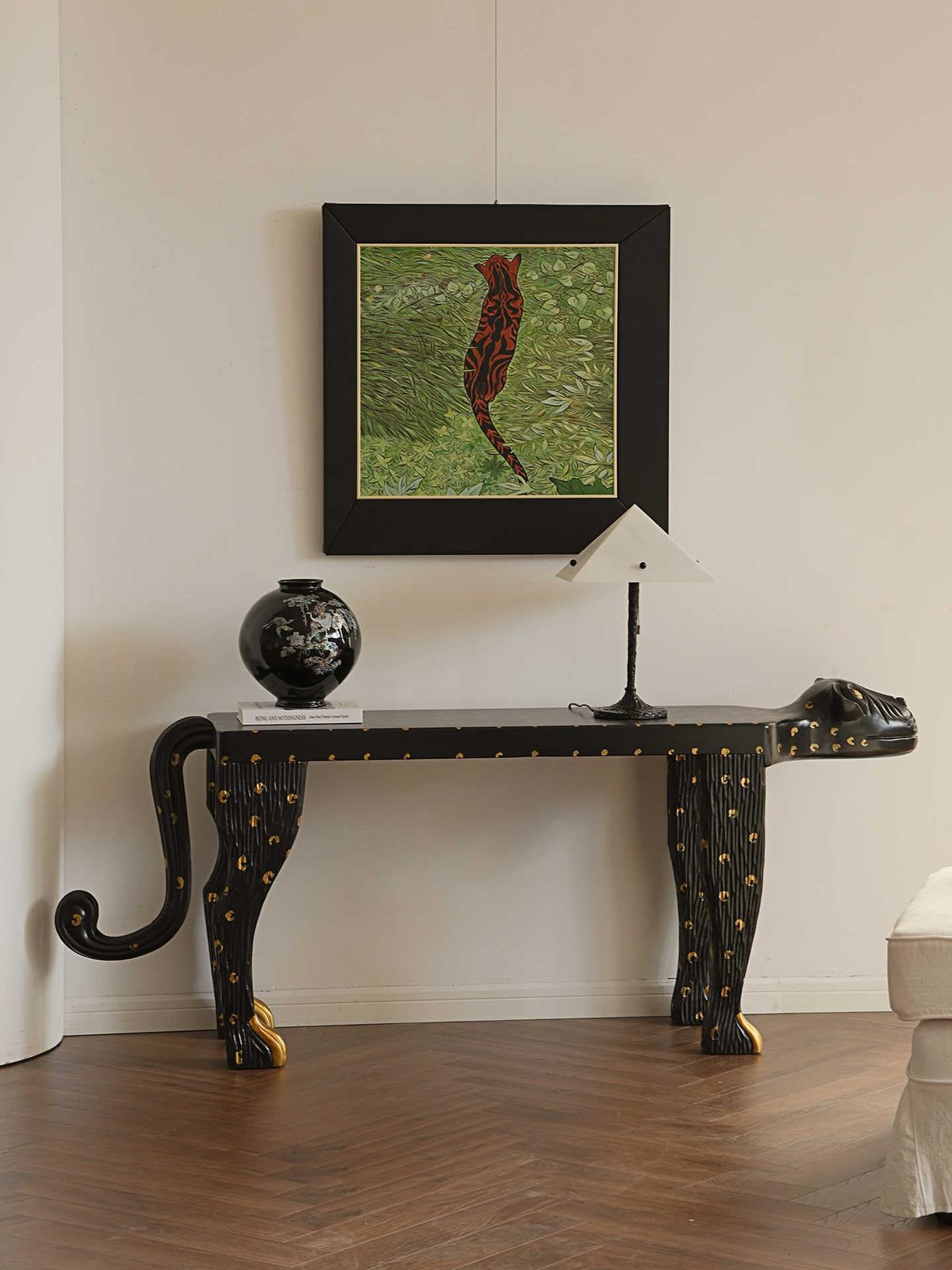 interoknack Luxe Mexican Jaguar Console Table ย Black & Gold Sculptural Entryway