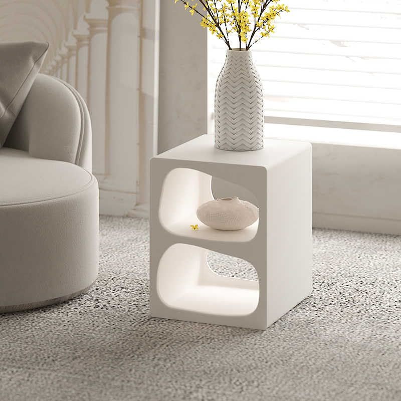 Modern Sculptural Side Table, White Irregular Geometric Nightstand for Living Ro